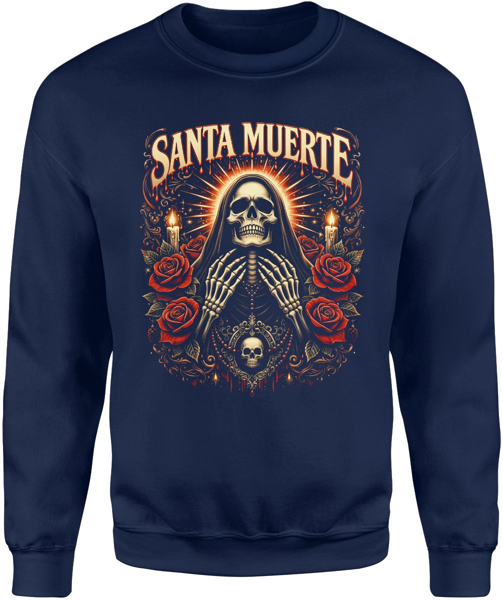 Santa Muerte czaszka róże świece mistyczny klimat religijny symbol śmierci tattoo dark styl Męska bluza