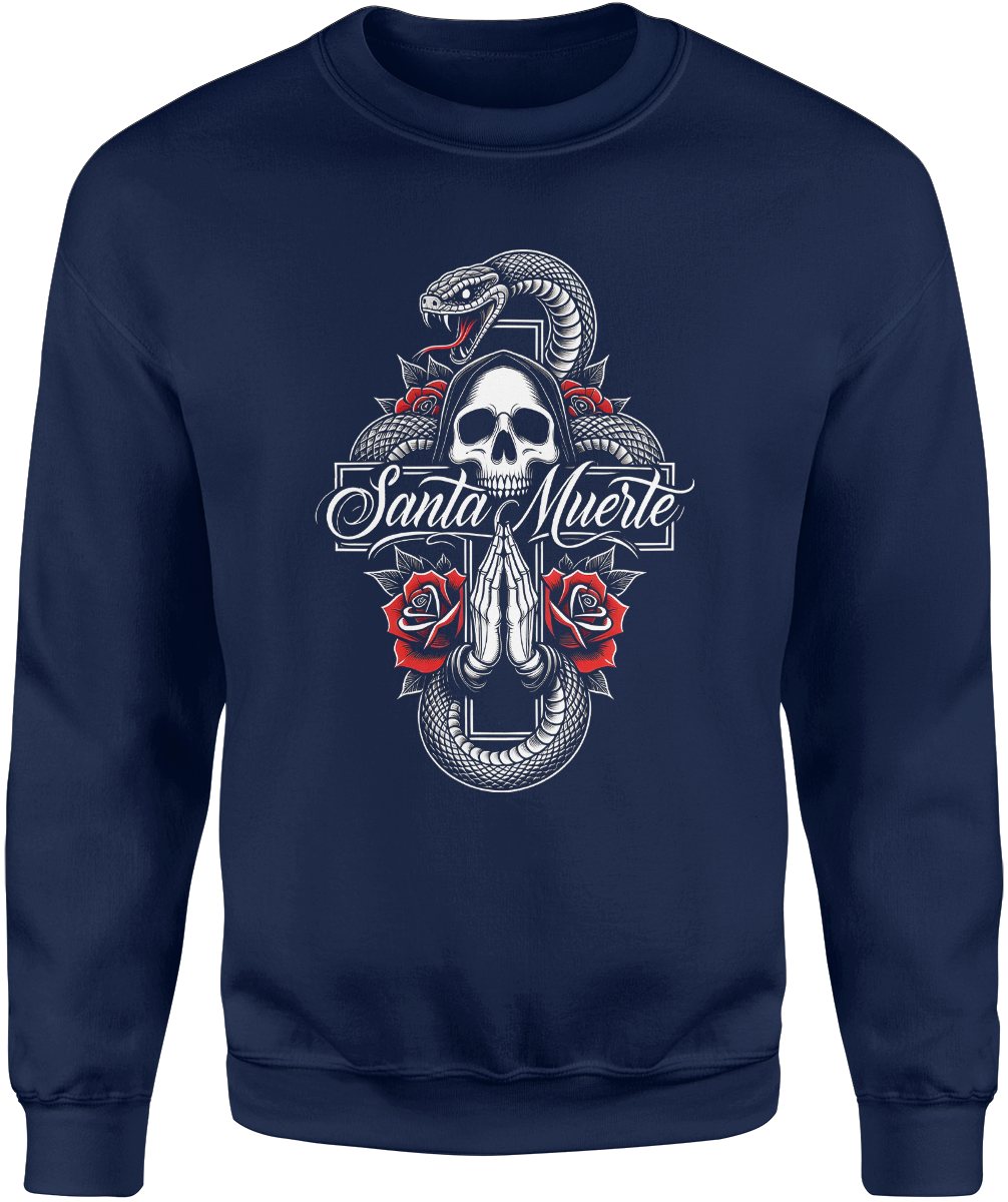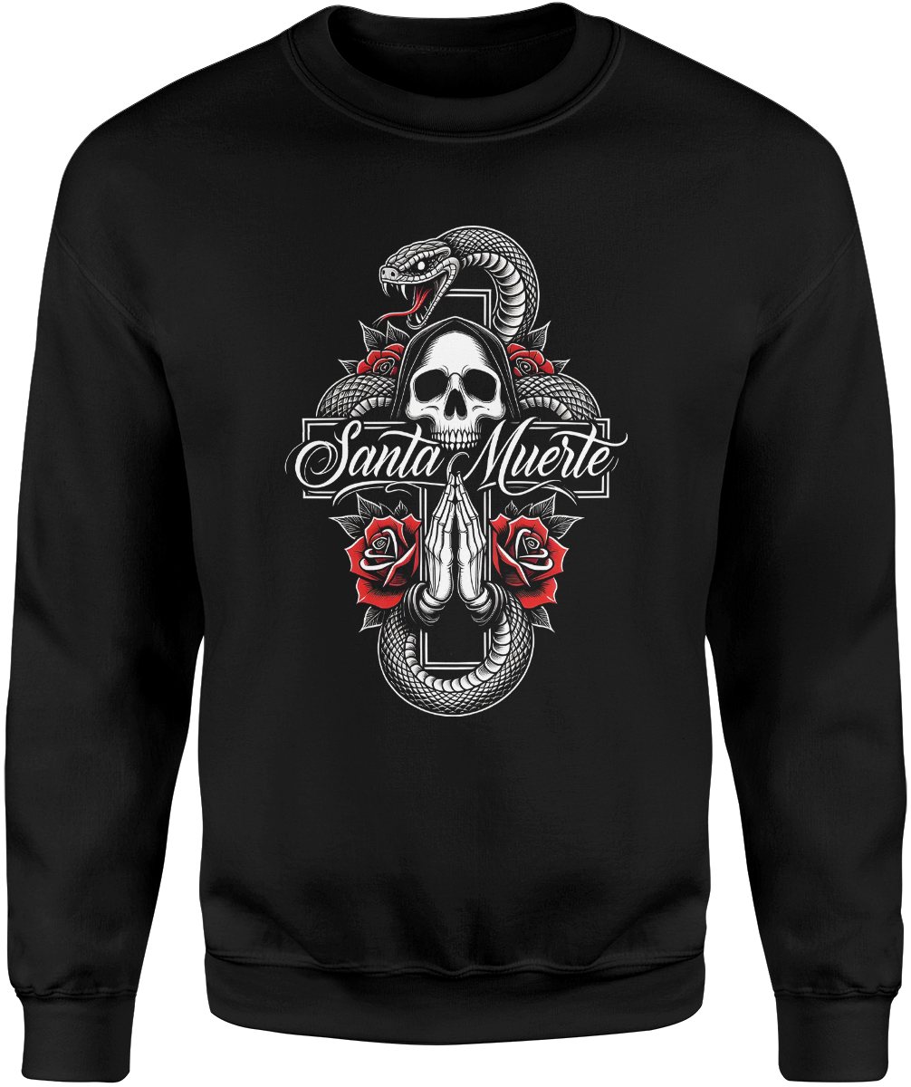 Santa Muerte czaszka róże wąż symbolika mistyczna mroczny klimat tatuaż styl Męska bluza