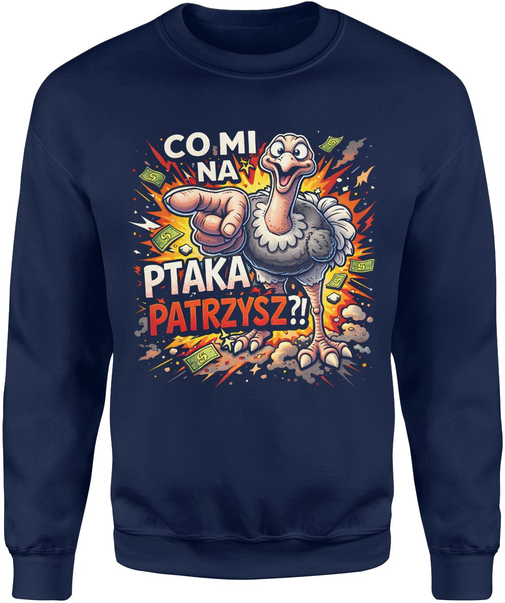 Struś wskazujący palcem memiczny tekst co mi na ptaka patrzysz humor Męska bluza