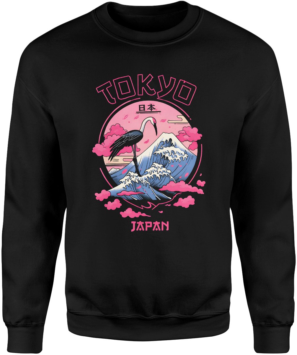 Tokio Japonia góra fala żuraw styl japoński neon klimat anime podróże kultura azjatycka Męska bluza
