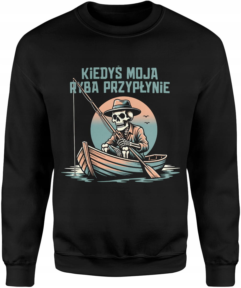 Wędkarz szkielet humor czarny dystans łowienie ryb Męska bluza