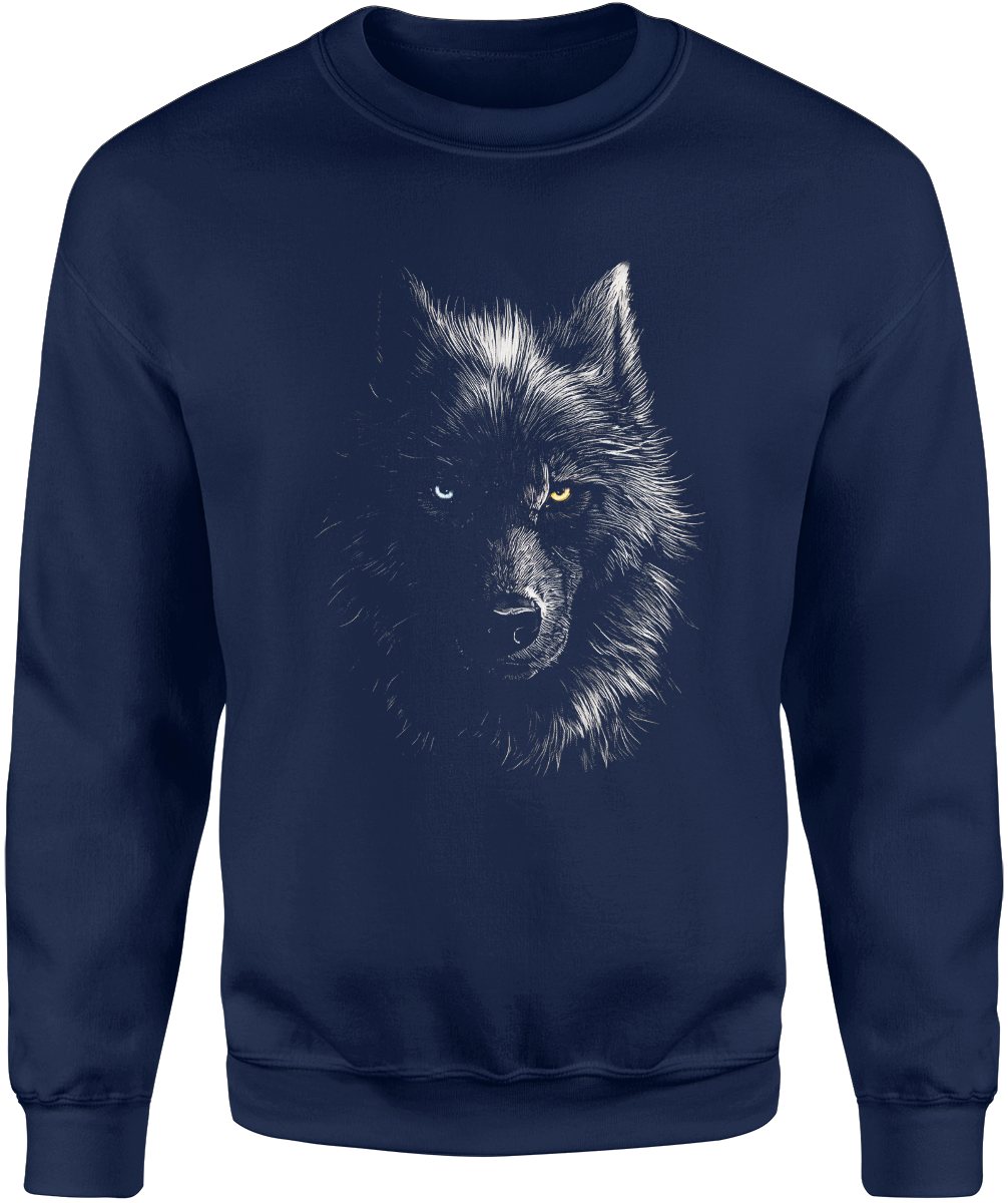 Wilk portret pół twarzy oczy kontrast dzikość natura tajemnica zwierzę mroczny styl Męska bluza