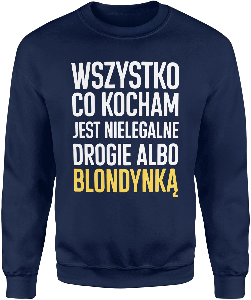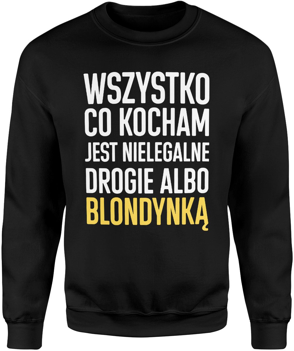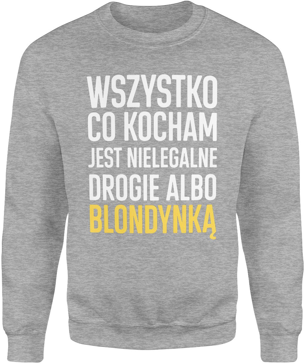Wszystko co kocham jest nielegalne drogie albo blondynka humor tekst impreza relacja ironia Męska bluza