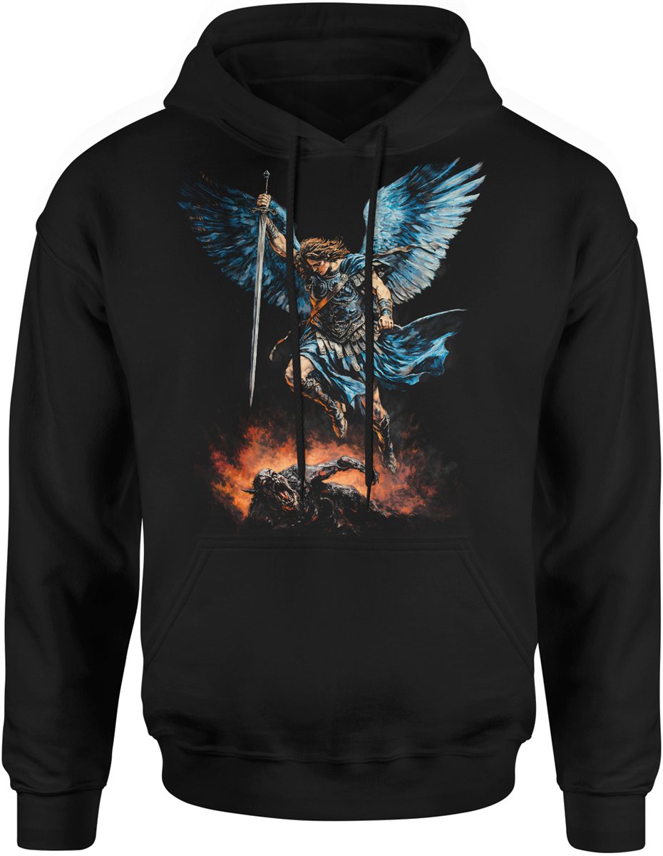 Anioł wojownik skrzydła miecz walka dobro kontra zło ogień epicka scena fantasy legenda Męska bluza z kapturem