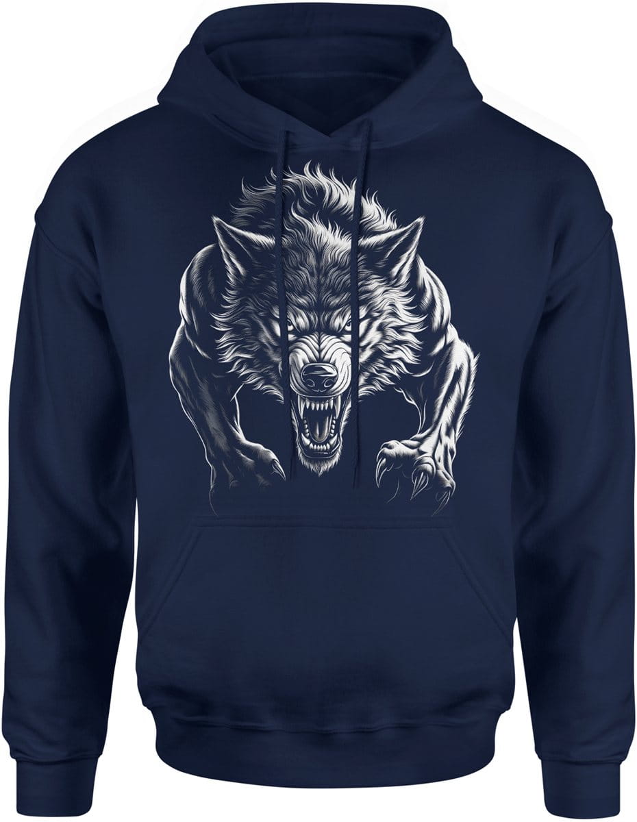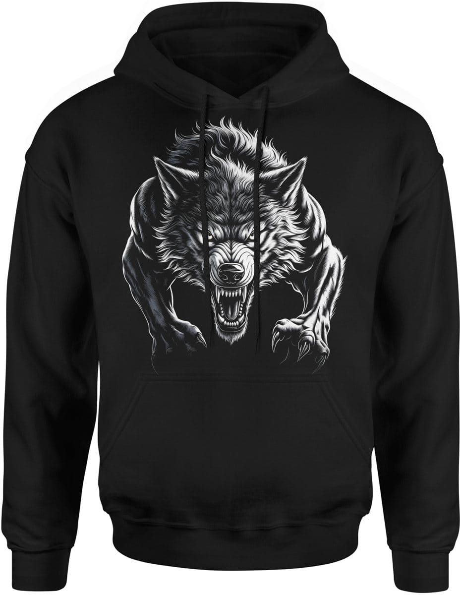 Atakujący wilk drapieżna siła dominacja instynkt bestii dzika wilkołak Męska bluza z kapturem