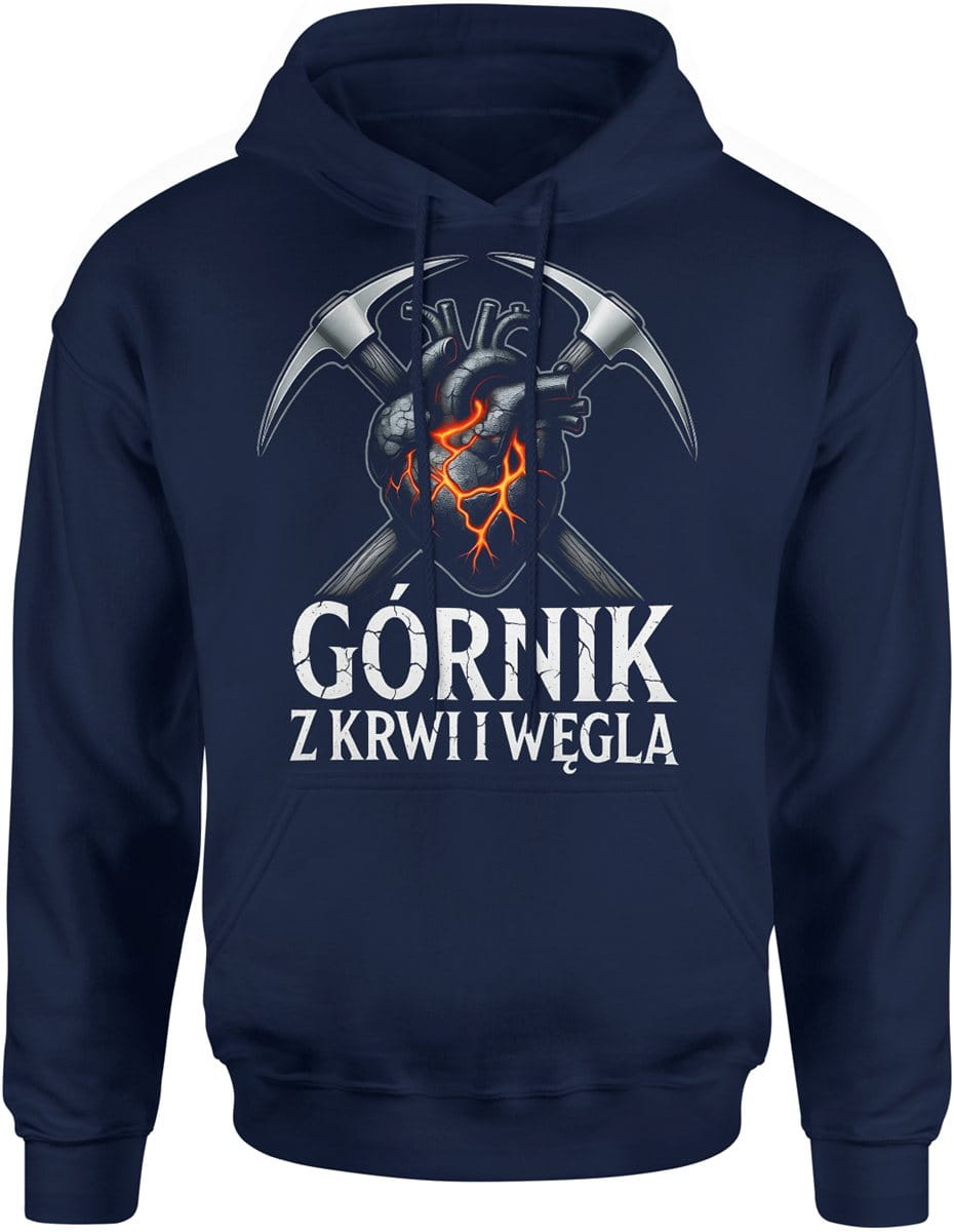 Górnik z krwi i węgla serce górnika duma barburka Męska bluza z kapturem