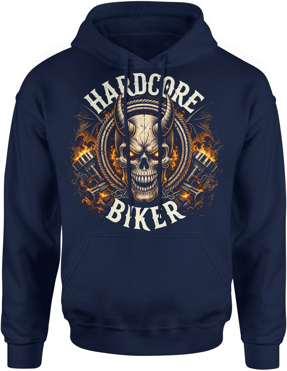 Hardcore biker motocykl czaszka płomienie stal silnik jazda moto styl Męska bluza z kapturem