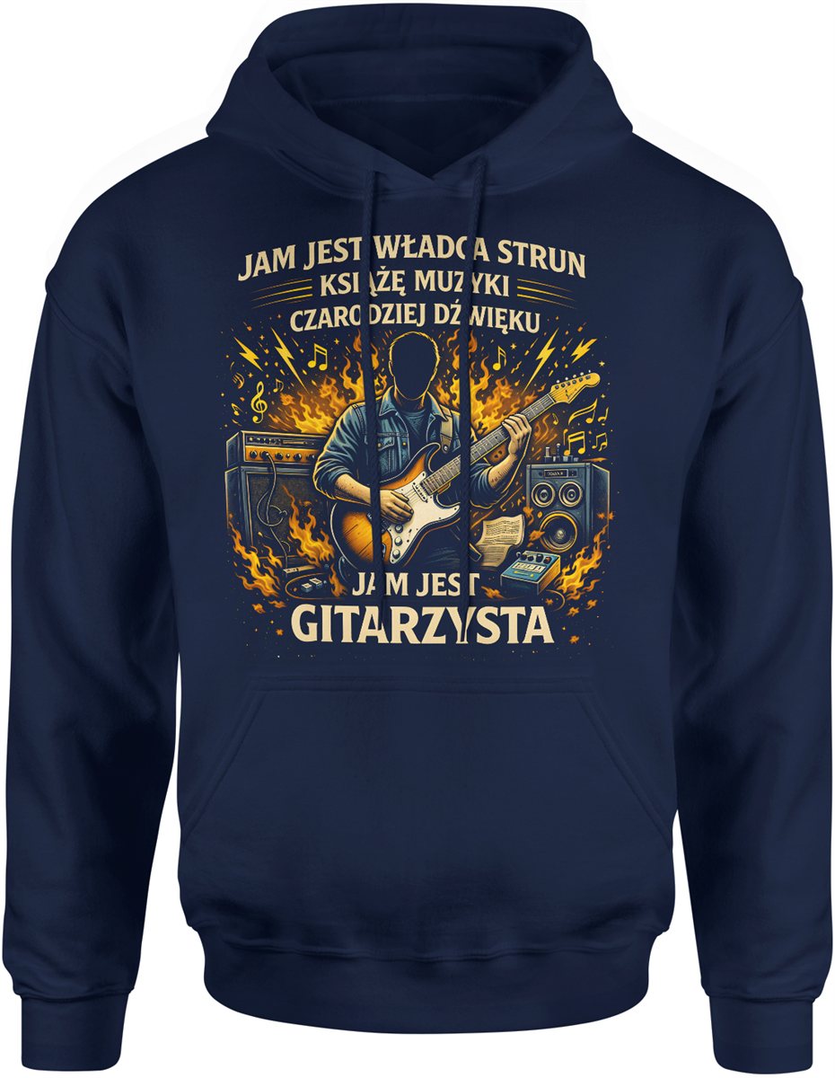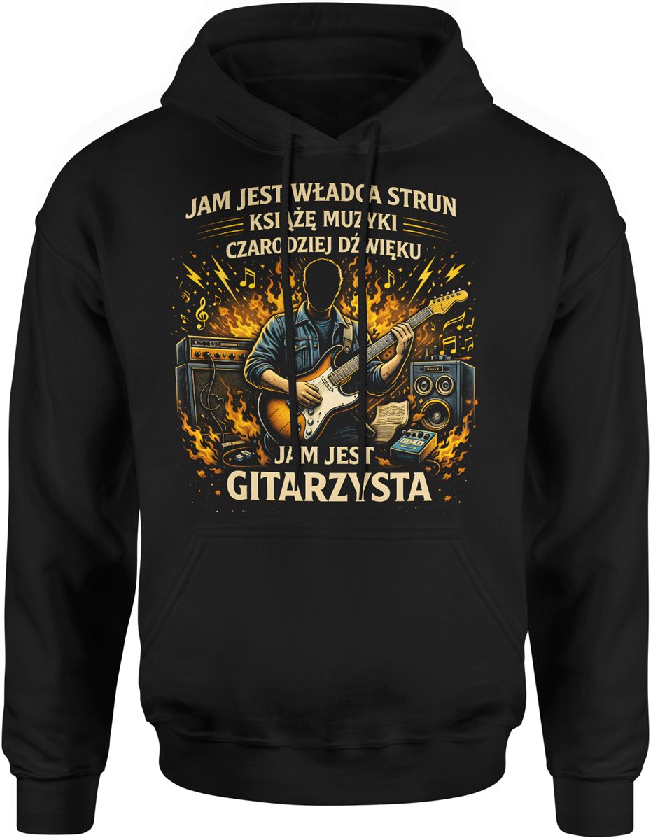 Jestem gitarzystą władca strun elektryczna gitara ogień scena koncert pasja Męska bluza z kapturem