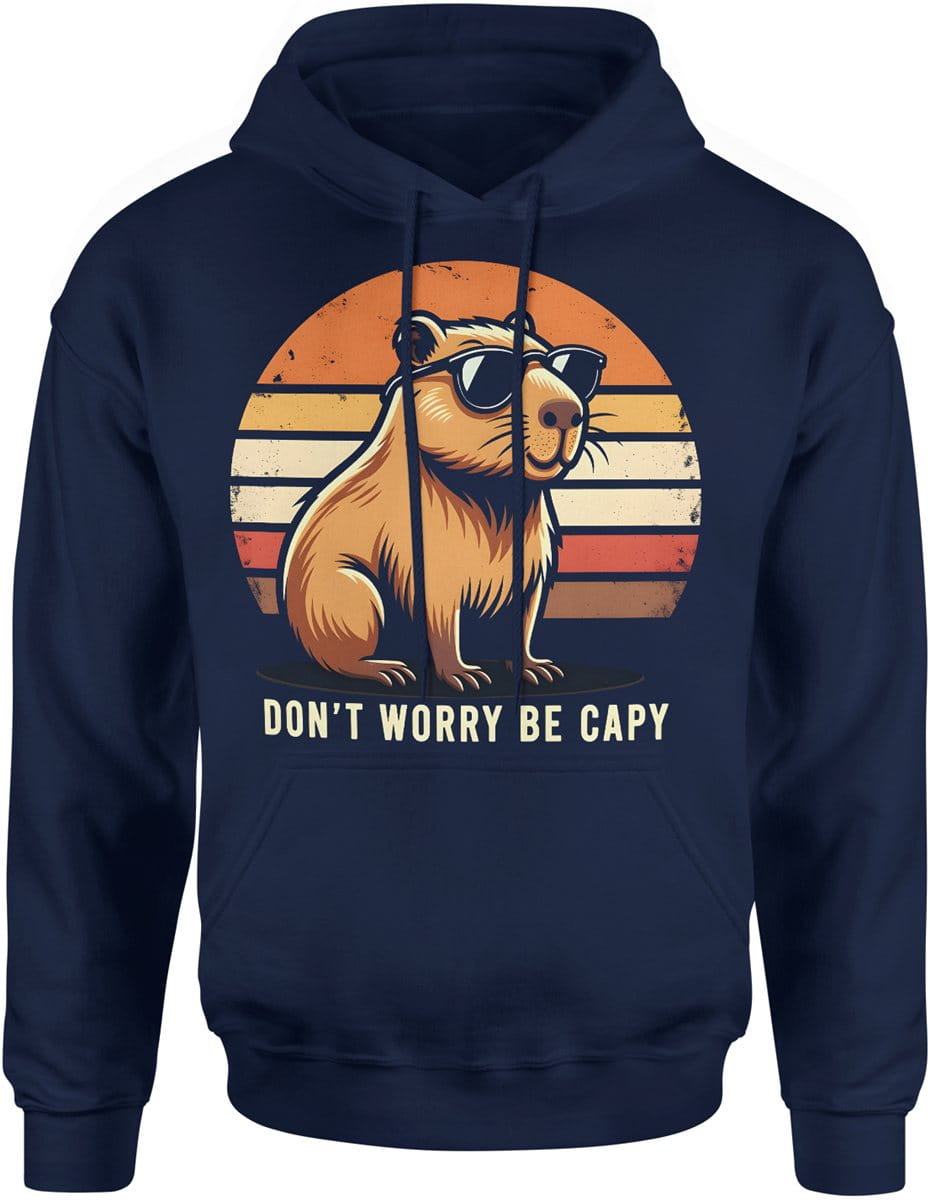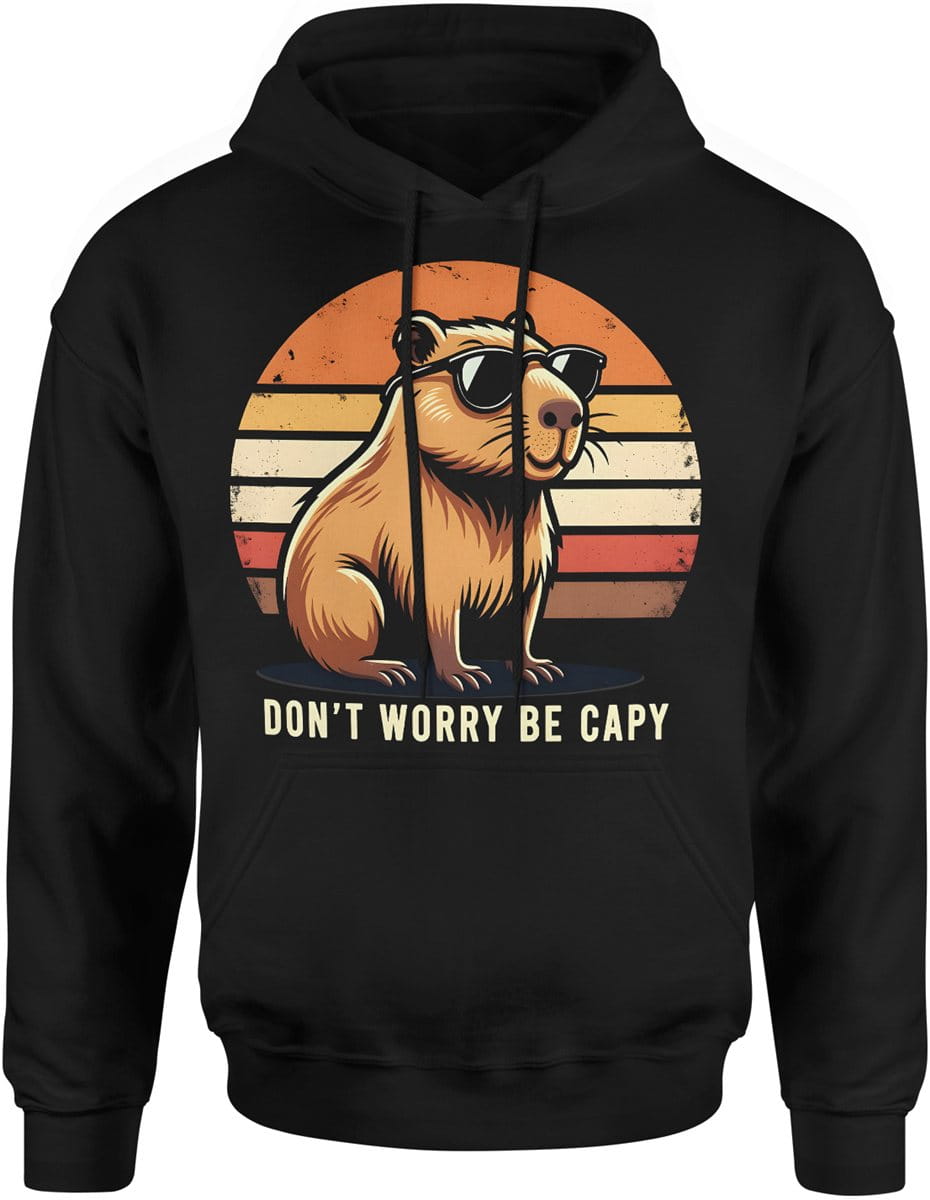 Kapibara dont worry be capy luz dystans humor chill vibe Męska bluza z kapturem