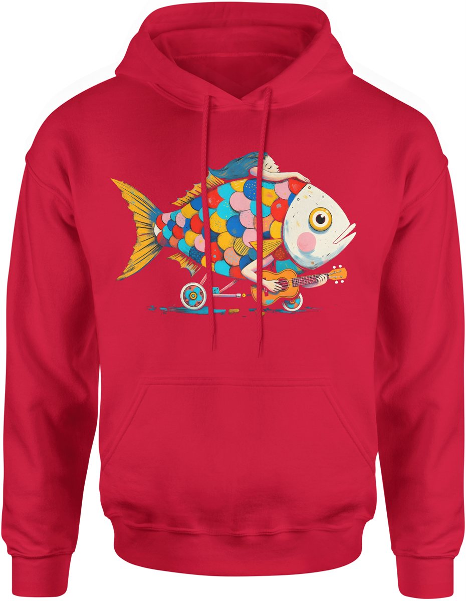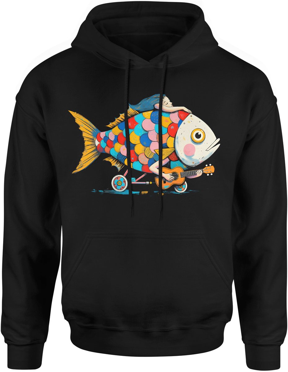 Kolorowa ryba fantazyjna gitara muzyka sztuka kreatywna ilustracja akwarela abstrakcja Męska bluza z kapturem