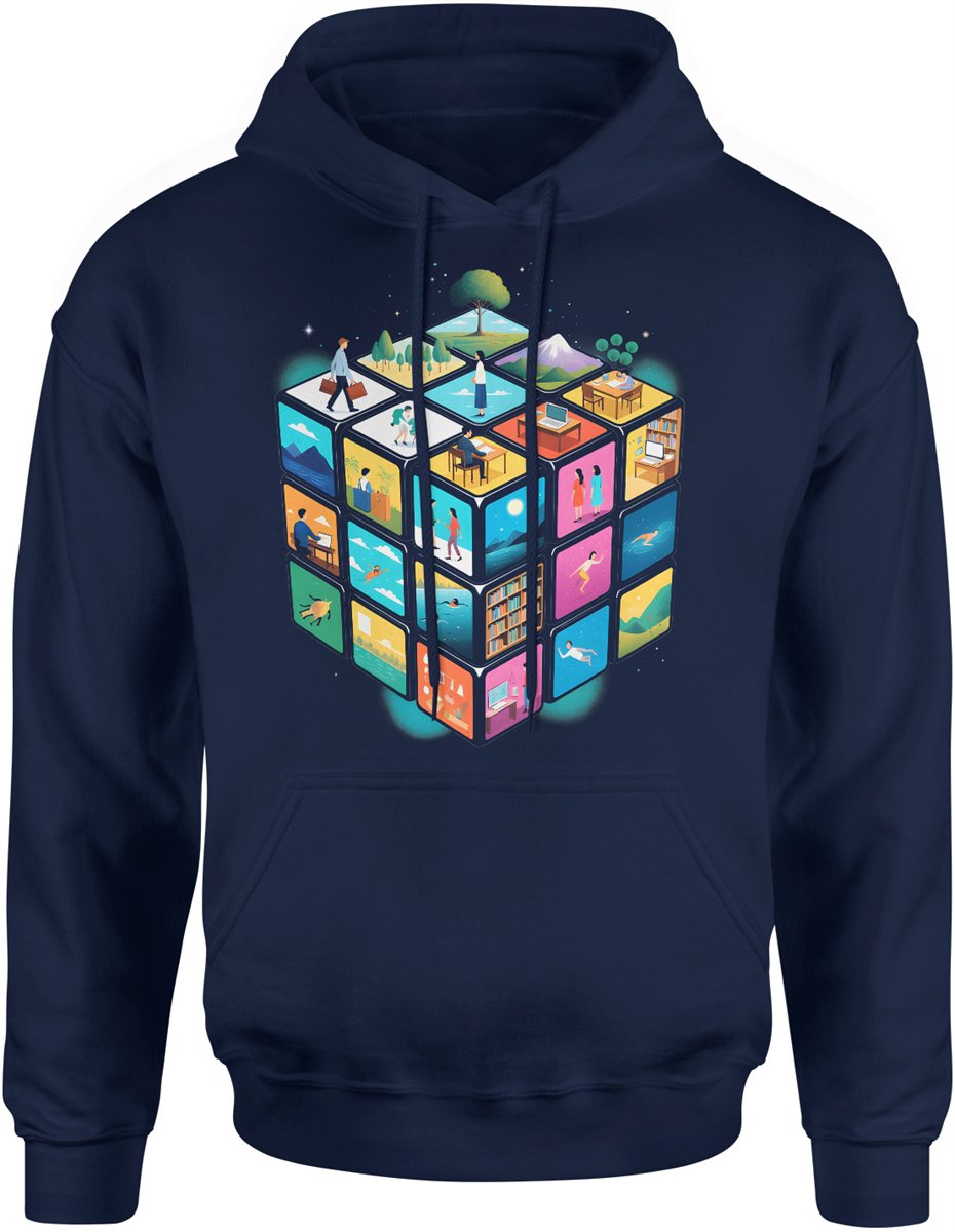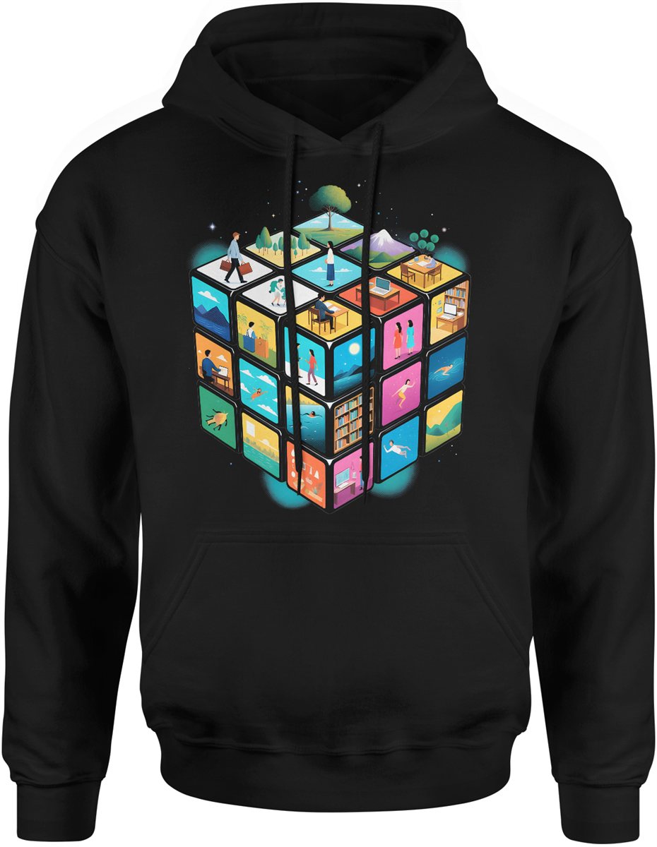 Kostka światów życie praca podróże natura kreatywność styl minimalistyczny nowoczesny design Męska bluza z kapturem