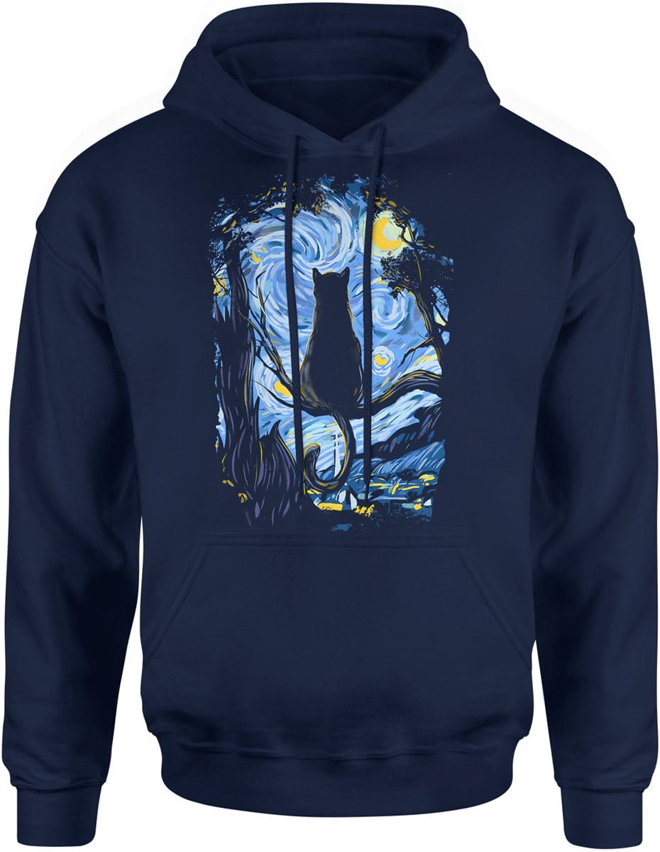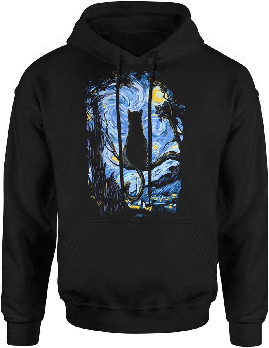 Kot w gwiaździstą noc styl van gogha artystyczny obraz Męska bluza z kapturem