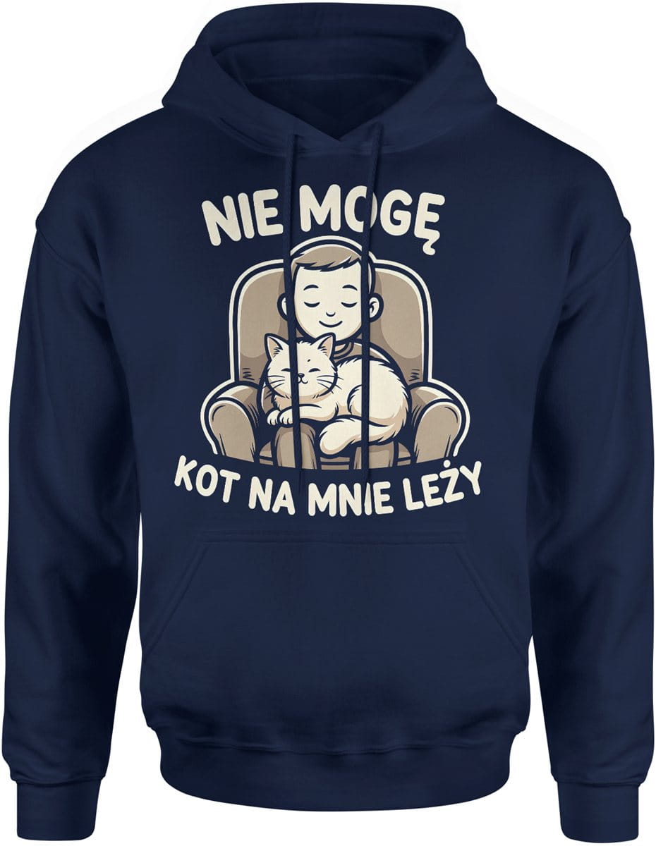 Nie mogę kot na mnie leży humor kociarz relaks domowy dystans do życia Męska bluza z kapturem