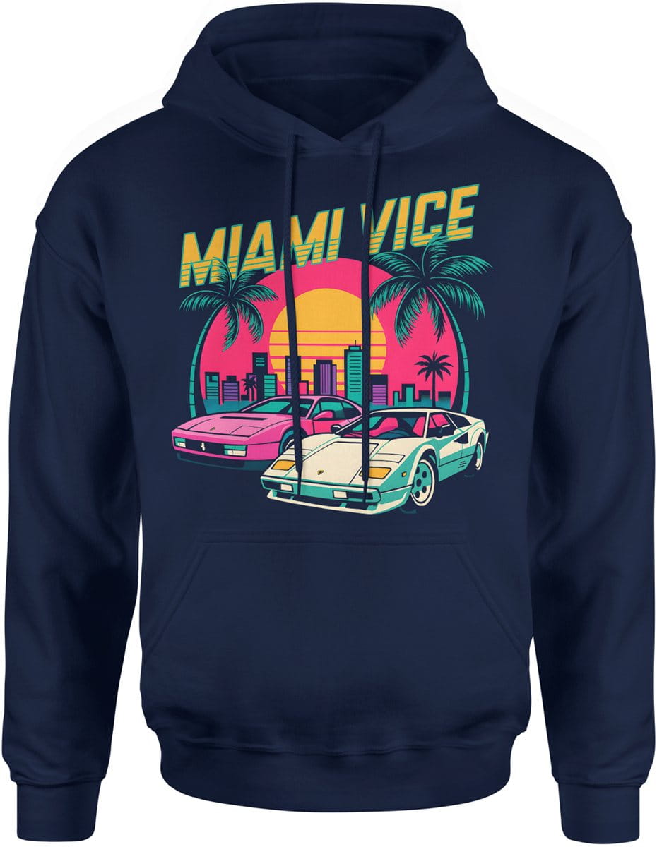 Miami Vice – retro klimat lat 80, szybkie auta i neonowe miasto Męska bluza z kapturem