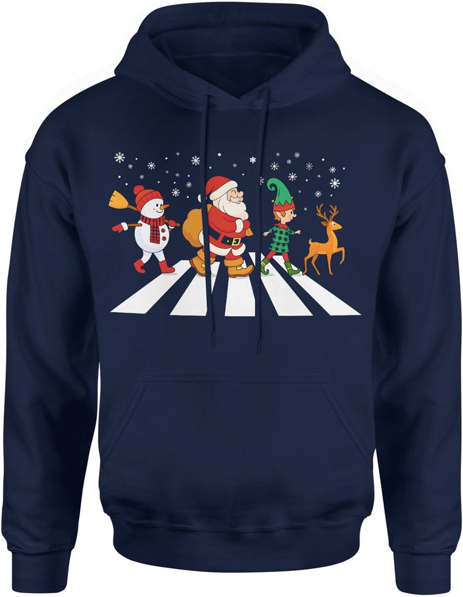 Mikołaj na przejściu – świąteczna parodia z elfem, reniferem i bałwanem Męska bluza z kapturem