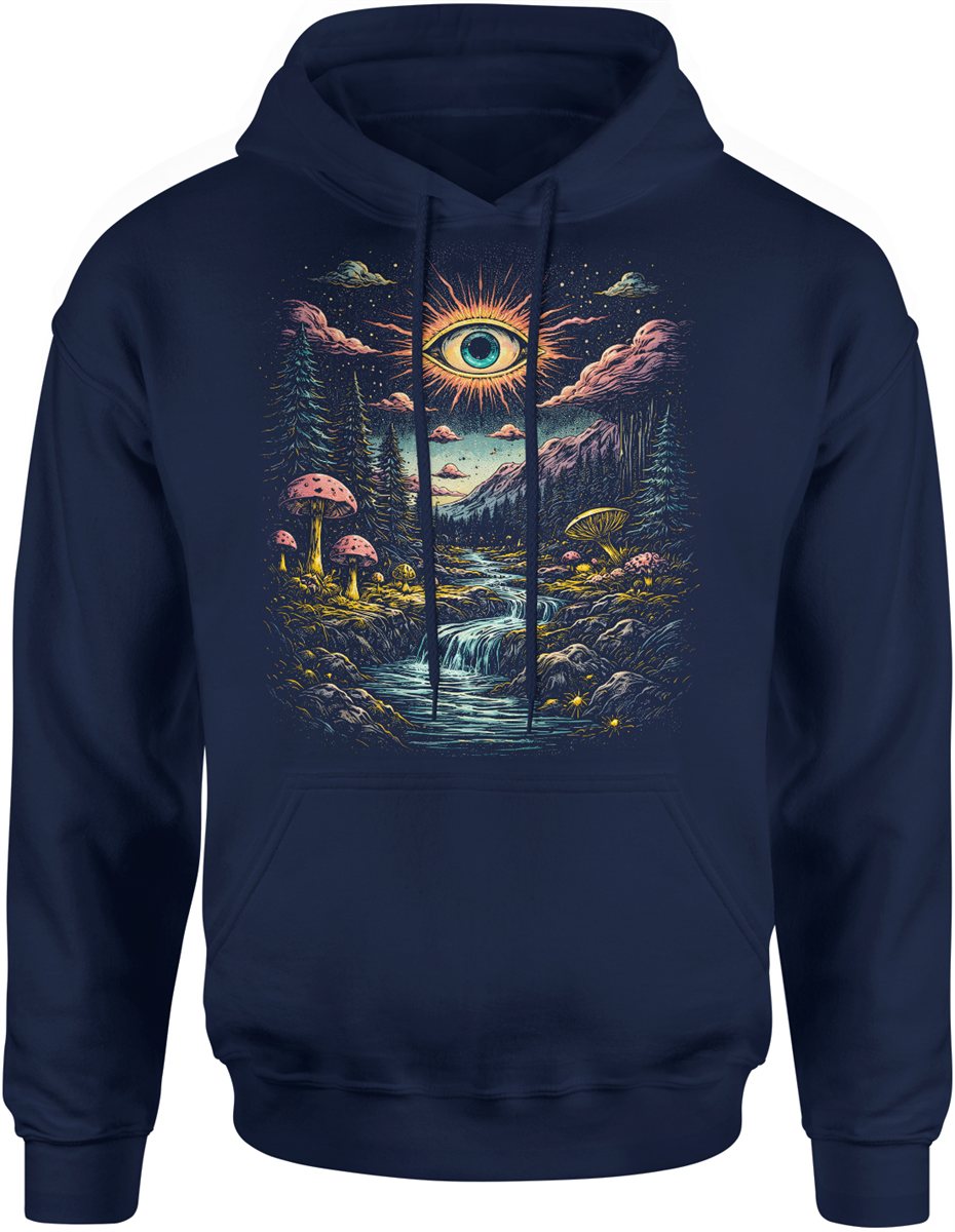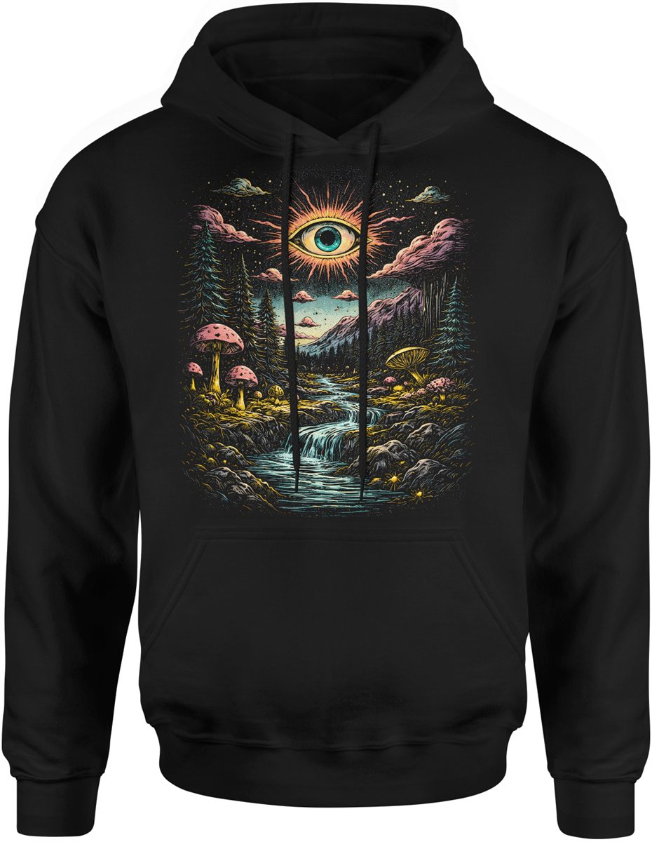 Mistyczne oko krajobraz góry las wodospad grzyby surrealizm psychodela natura fantasy Męska bluza z kapturem