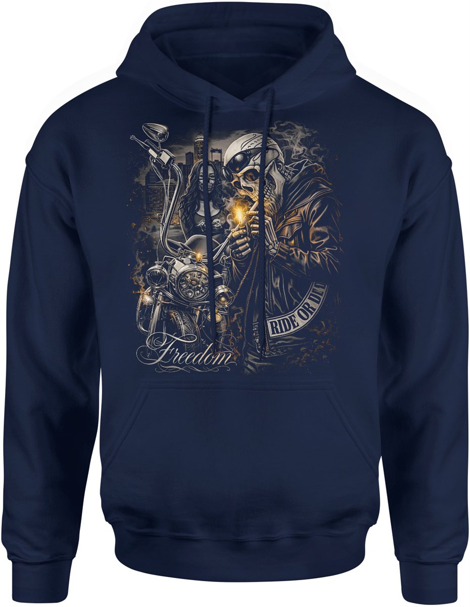 Motocykl szkielet biker ride or die wolność droga styl motoryzacyjny chopper klimat noc Męska bluza z kapturem