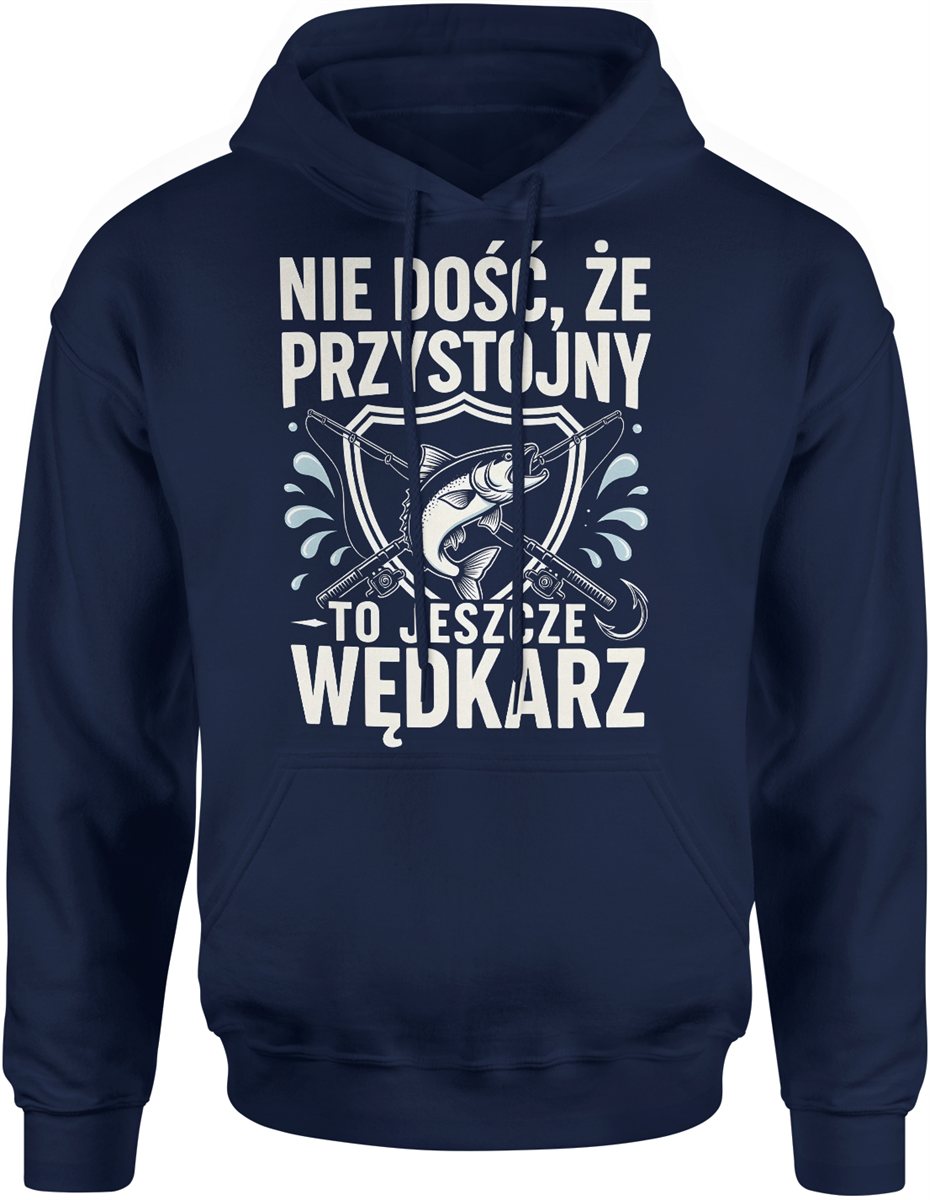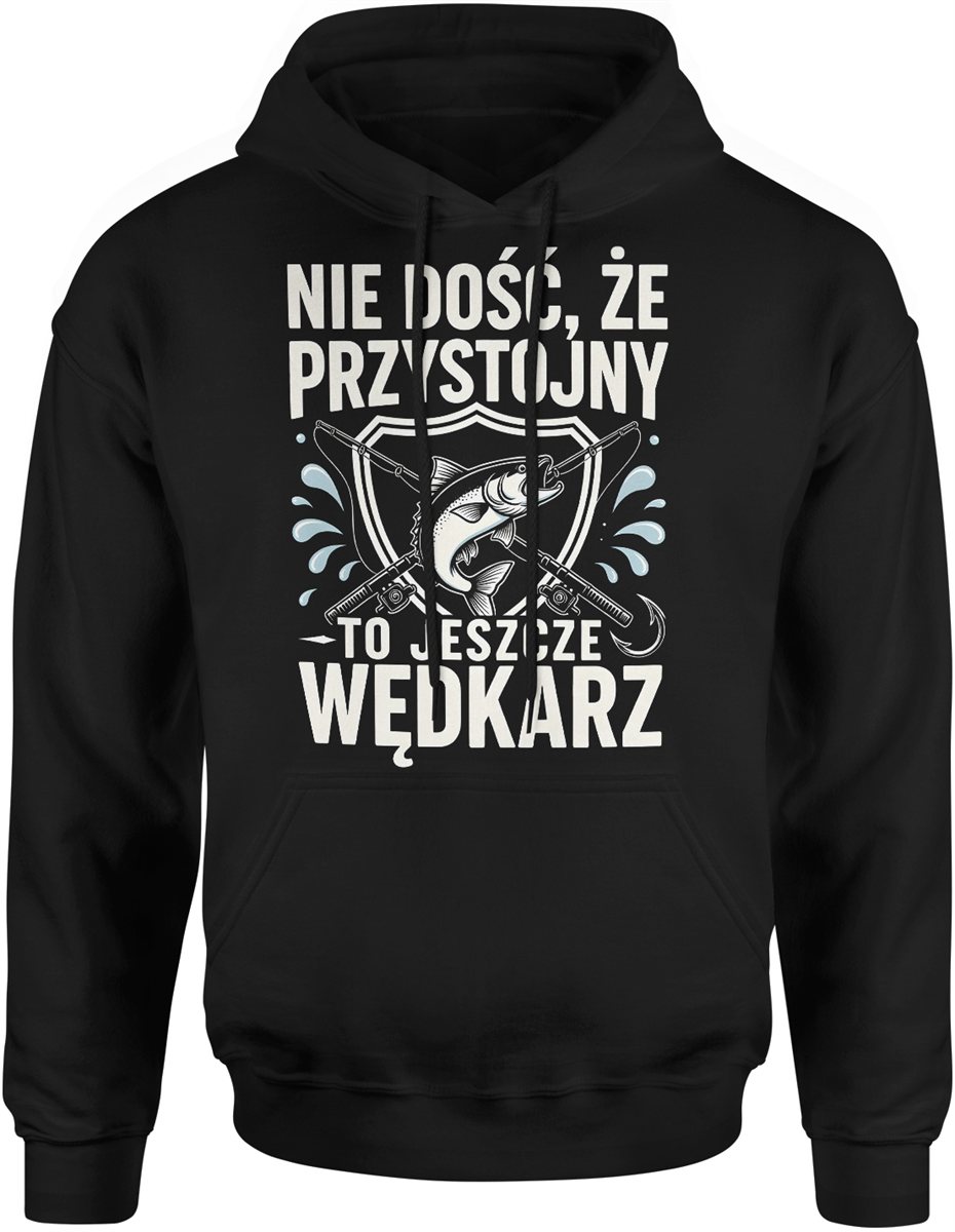 Nie dość że przystojny to jeszcze wędkarz ryba spinning jezioro hobby łowienie humor Męska bluza z kapturem
