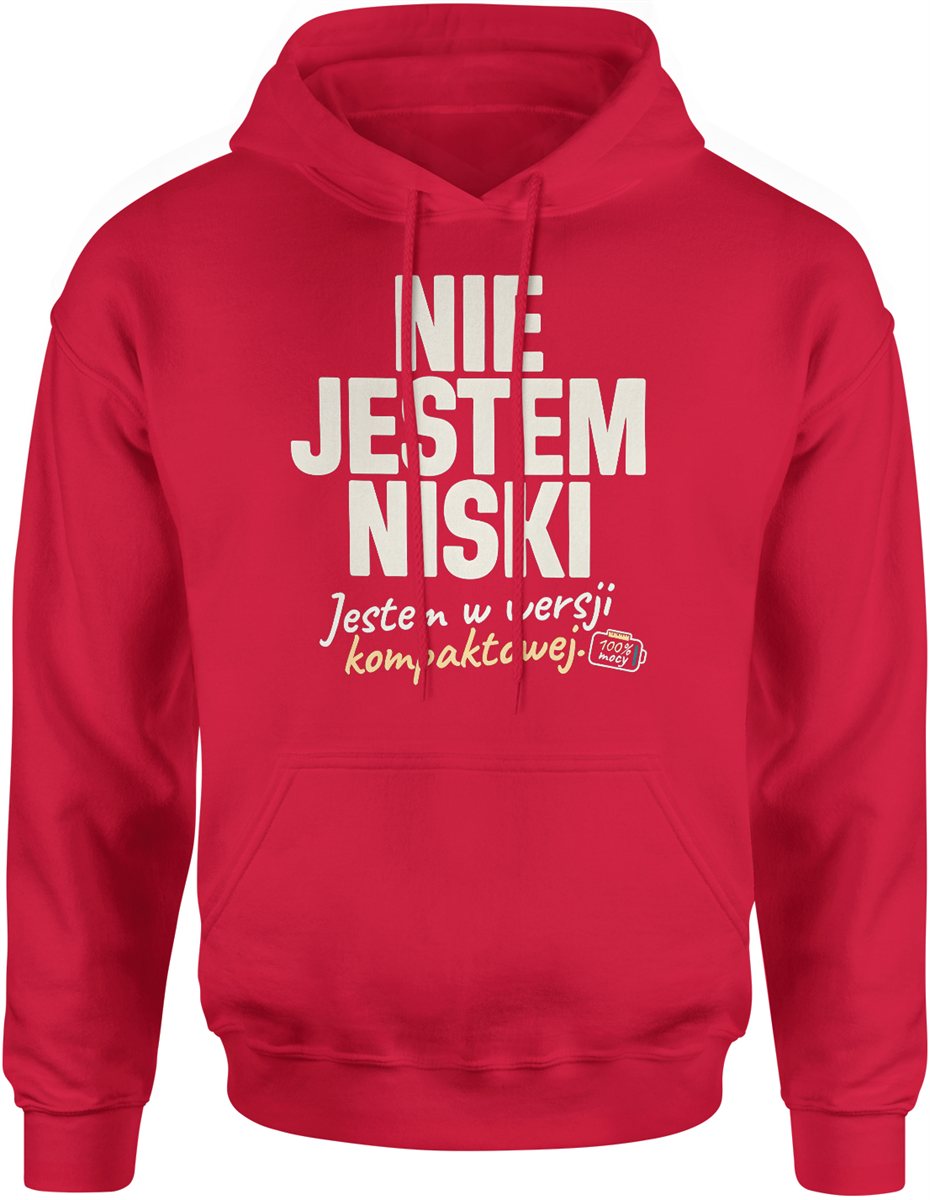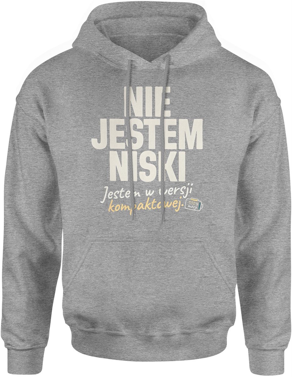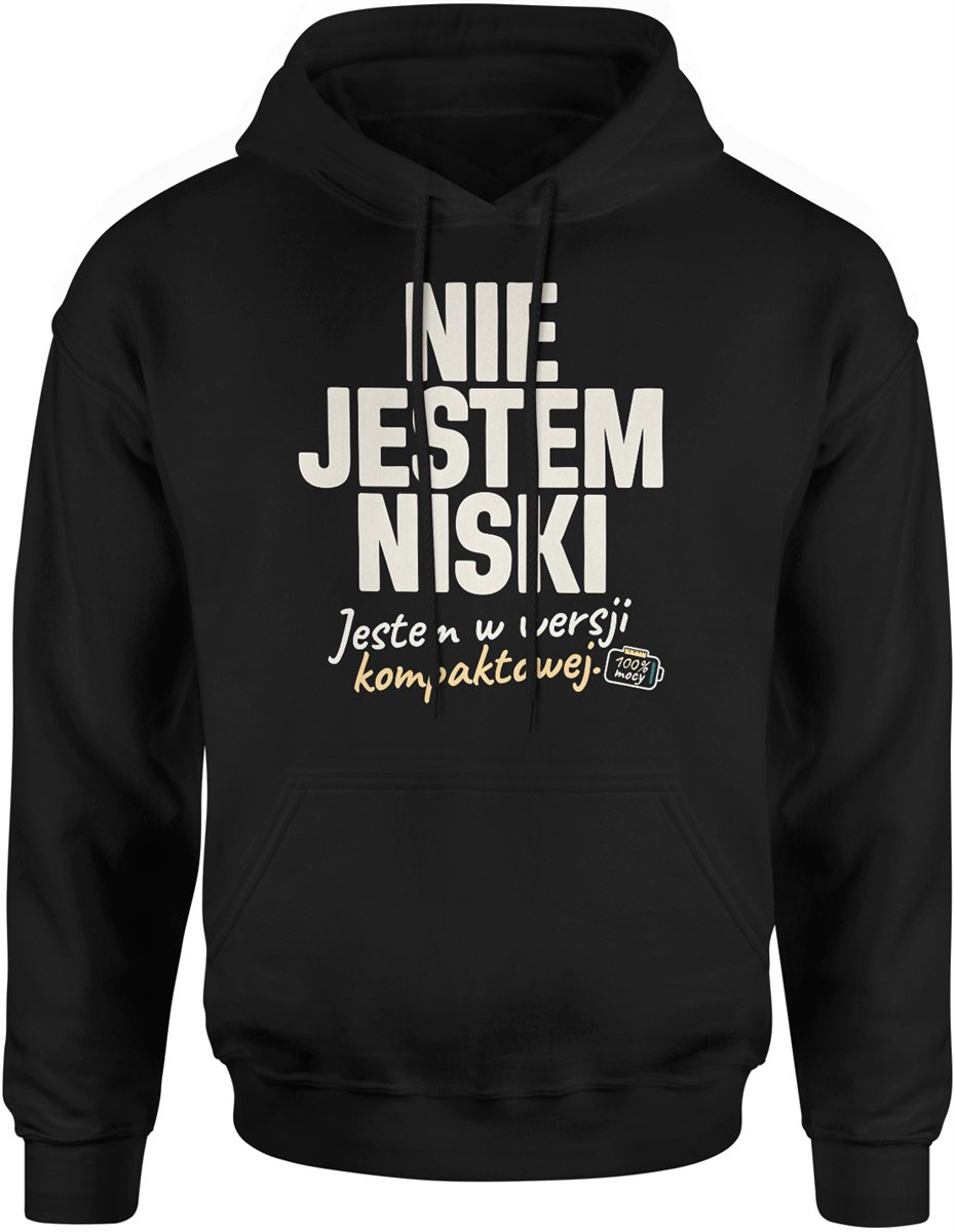 Nie jestem niski jestem w wersji kompaktowej tekst humor wzrost ironia dystans cytat Męska bluza z kapturem