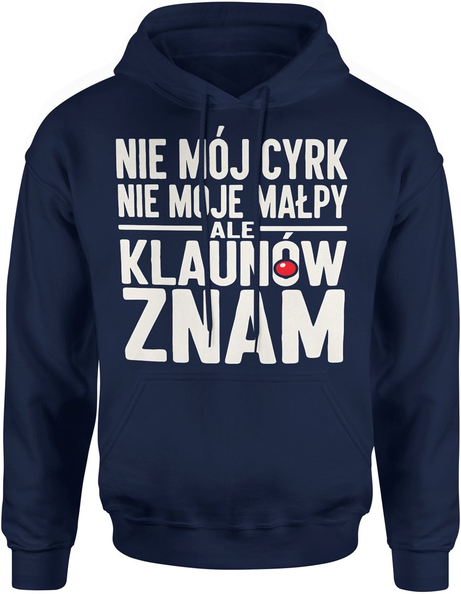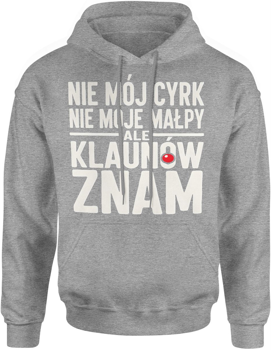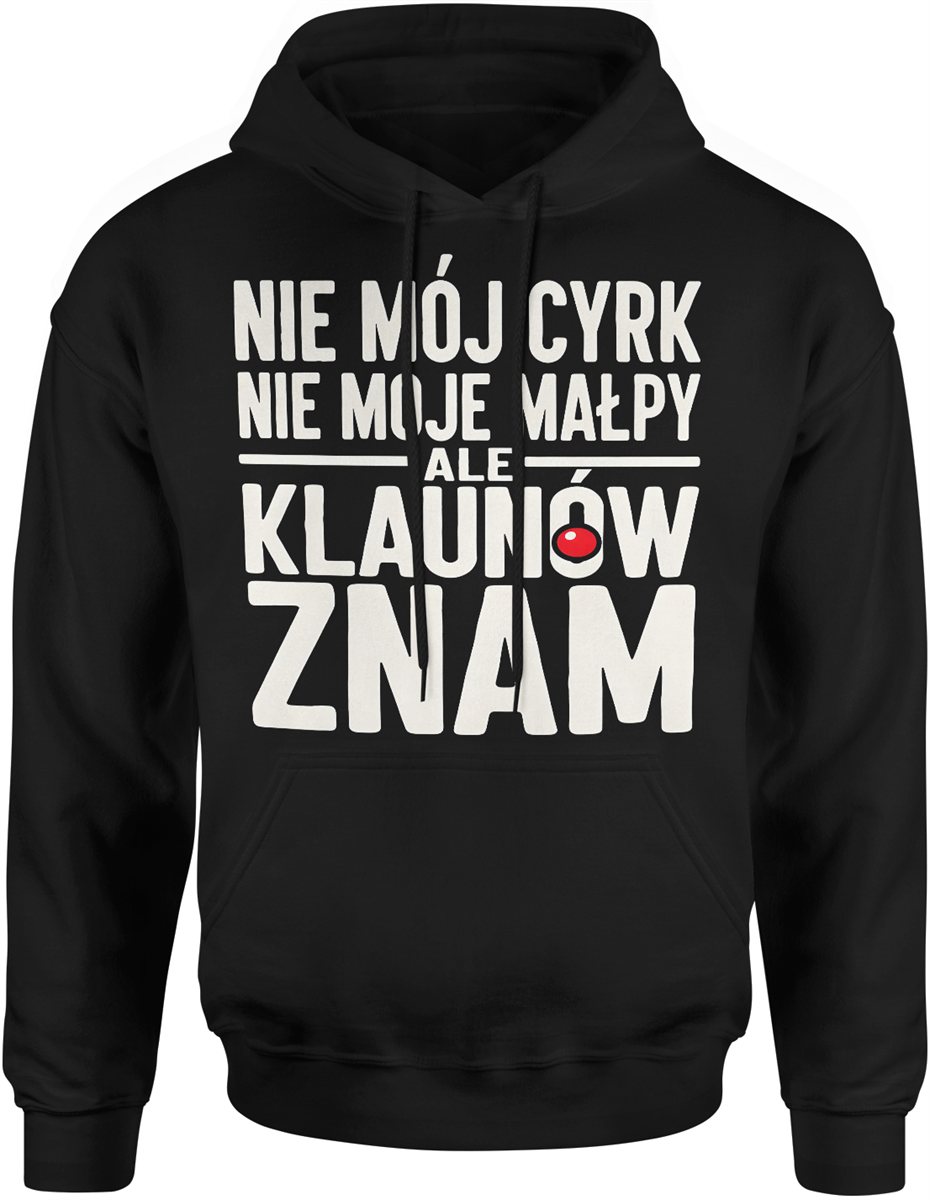 Nie mój cyrk nie moje małpy ale klaunów znam tekst humor dystans ironia cytat życie Męska bluza z kapturem
