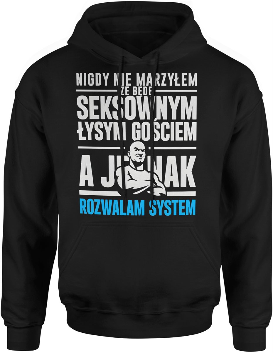 Nigdy nie marzyłem łysy gość siła charakter motywacja humor ironia Męska bluza z kapturem