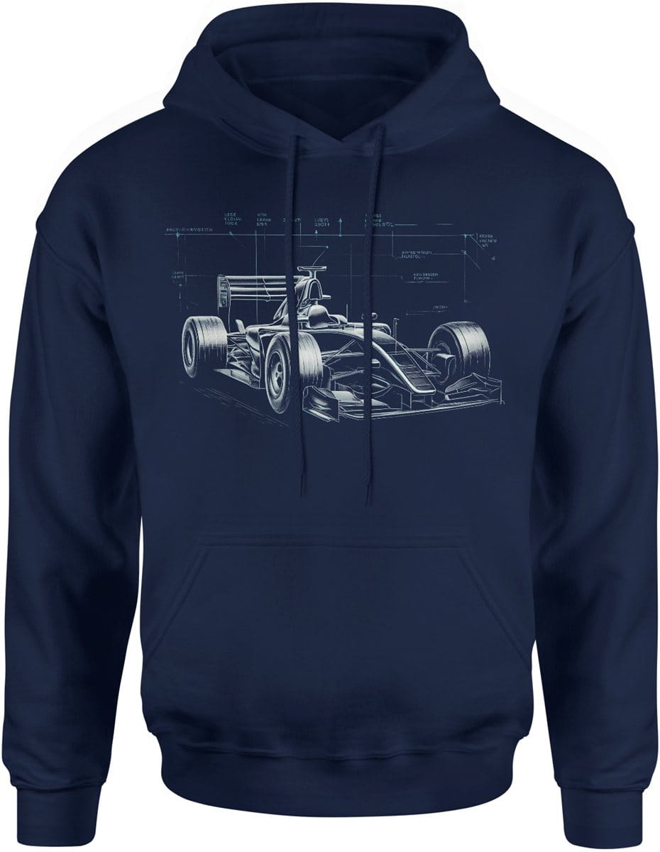 Projekt bolidu F1 techniczny rysunek auta wyścigowego Męska bluza z kapturem