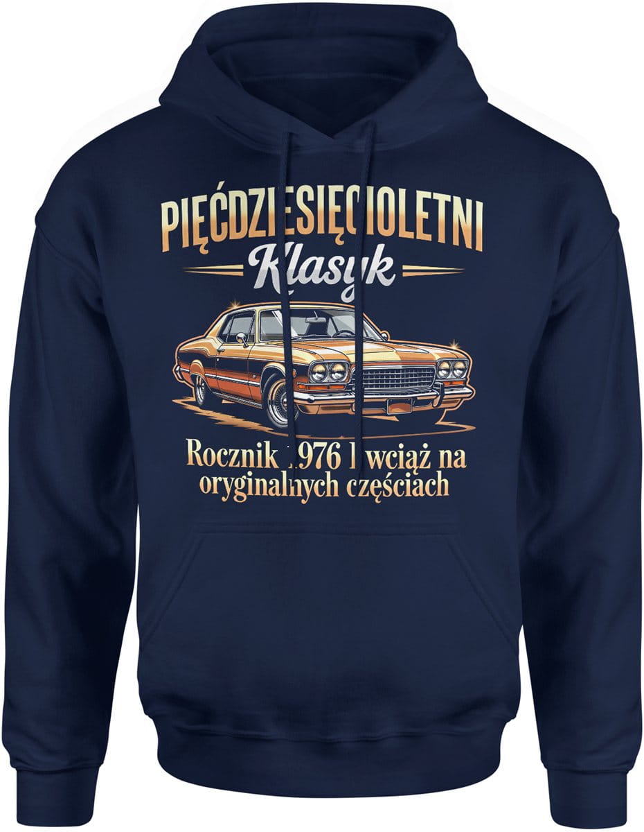 Pięćdziesięcioletni klasyk rocznik 1976 legenda styl retro motoryzacja Męska bluza z kapturem