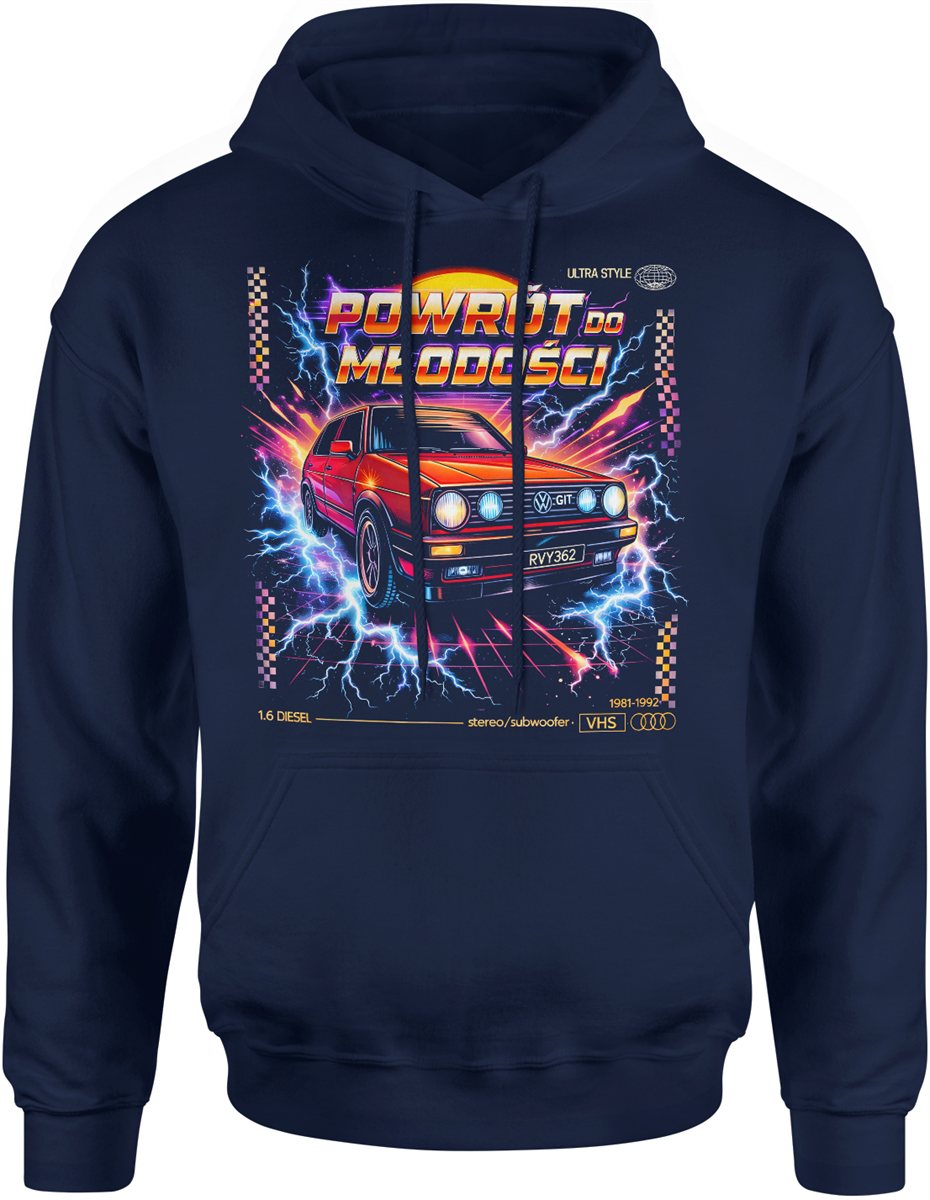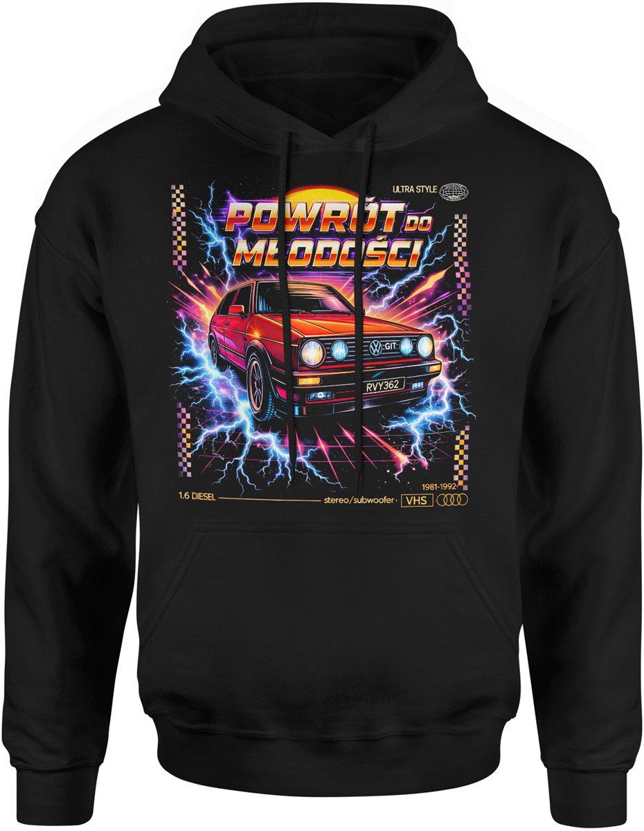 Samochód retro neonowy klasyk powrót do młodości lata 80 styl Męska bluza z kapturem