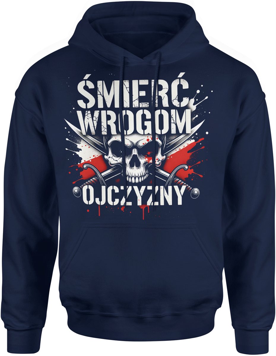 Śmierć Wrogom Ojczyzny czaszka miecze patriotyczny symbol walka honor siła czerwono biała Męska bluza z kapturem