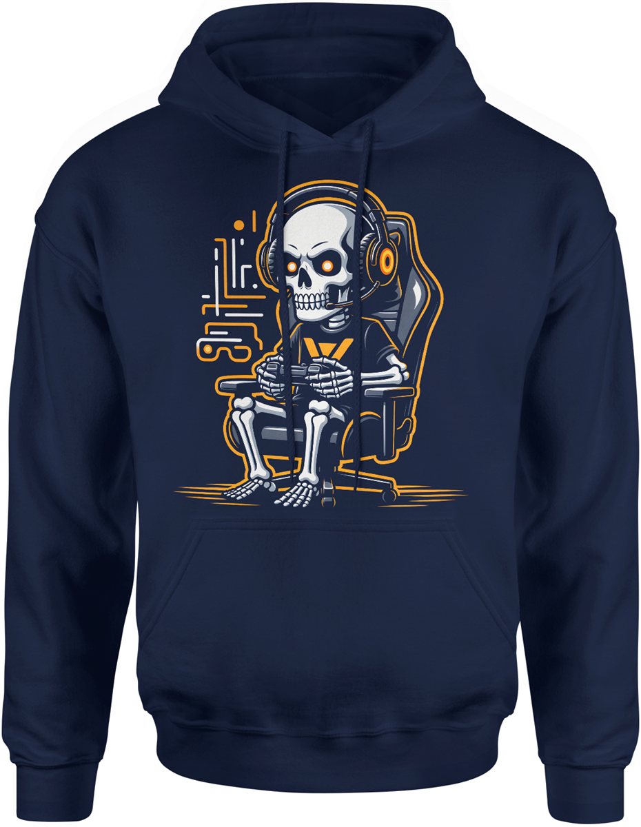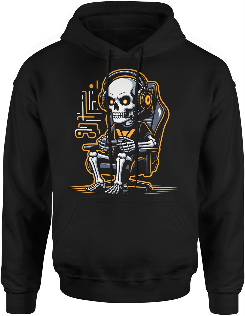 Szkielet gracz gaming headset pad komputer styl gracza e-sport rozrywka nocna pixel vibe Męska bluza z kapturem