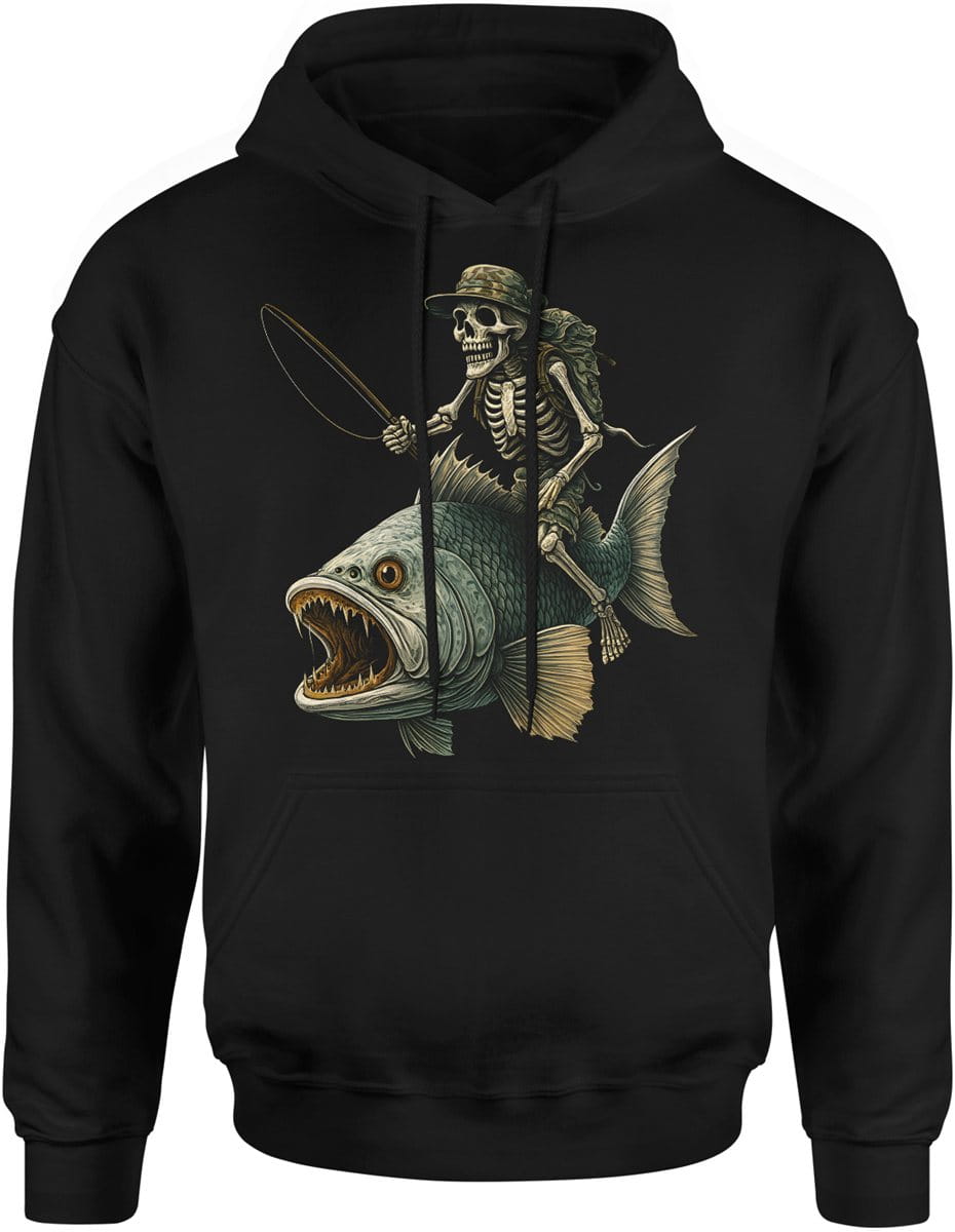 Szkielet wędkarz na rybie czarny humor pasja łowienia Męska bluza z kapturem
