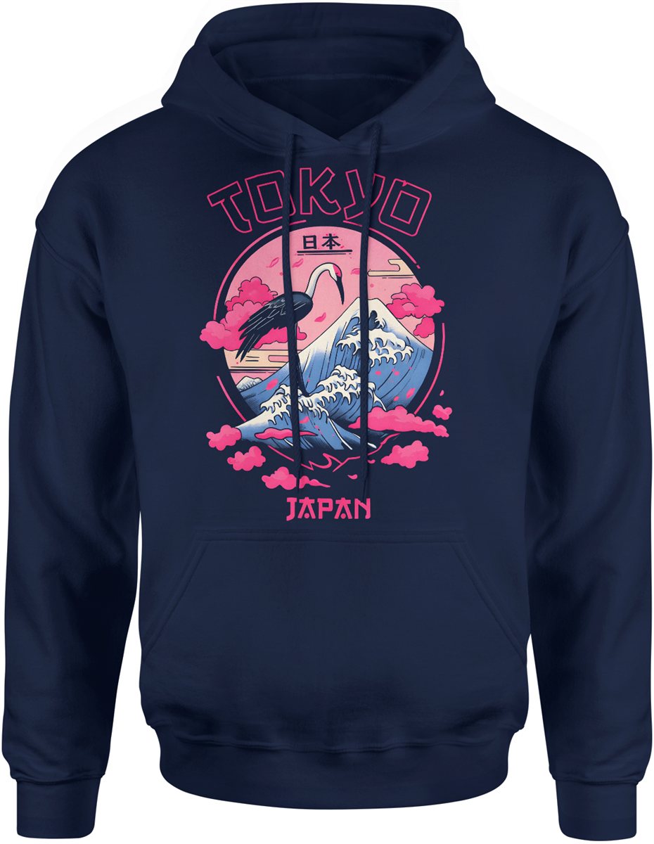 Tokio Japonia góra fala żuraw styl japoński neon klimat anime podróże kultura azjatycka Męska bluza z kapturem