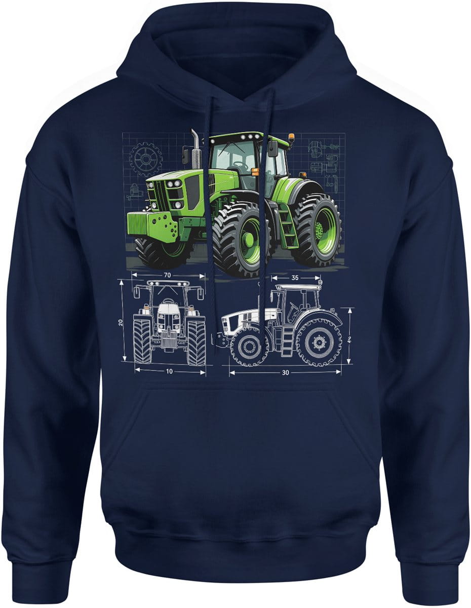 Traktor rolniczy schemat techniczny precyzja maszyny rolnictwo Męska bluza z kapturem