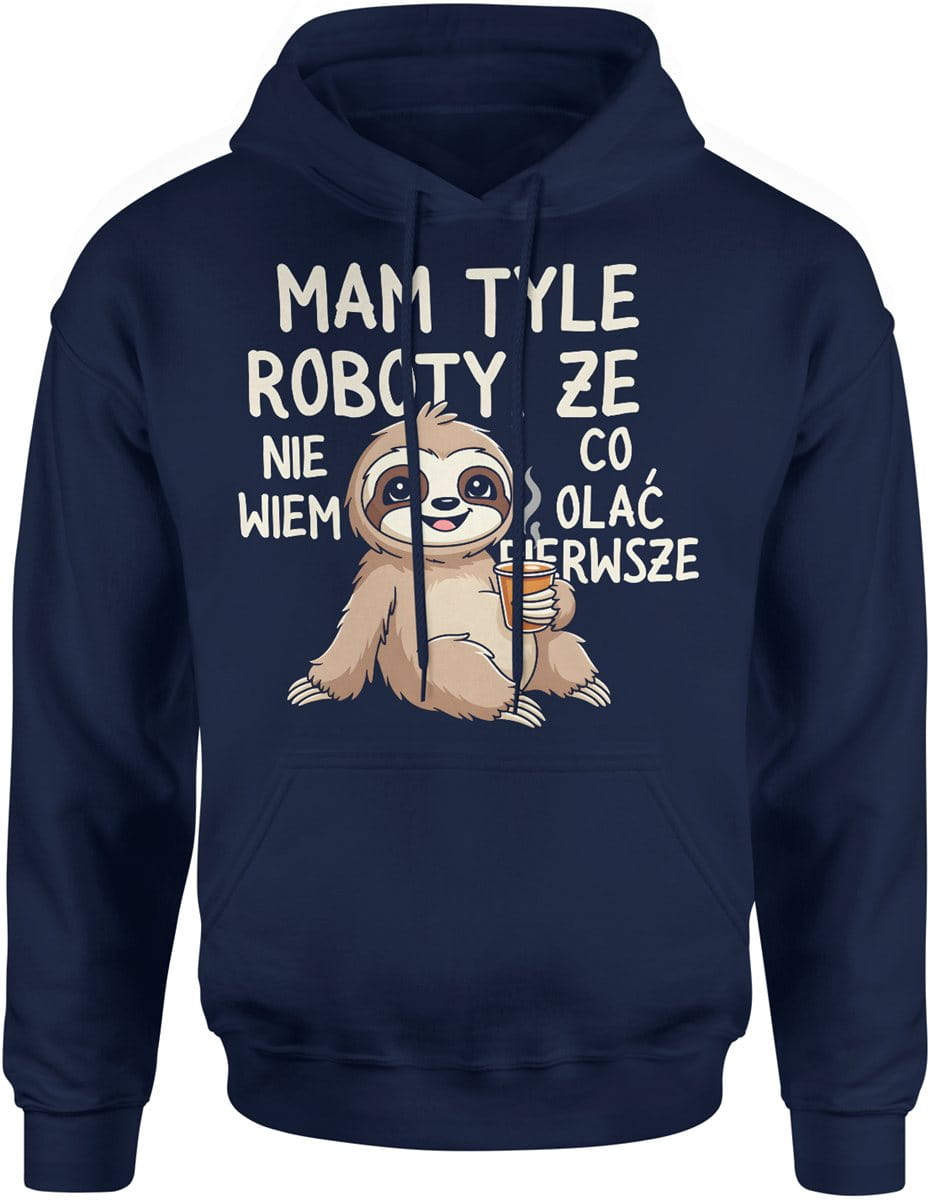 Mam tyle roboty że nie wiem co olać pierwszy leniwiec humor dystans Męska bluza z kapturem