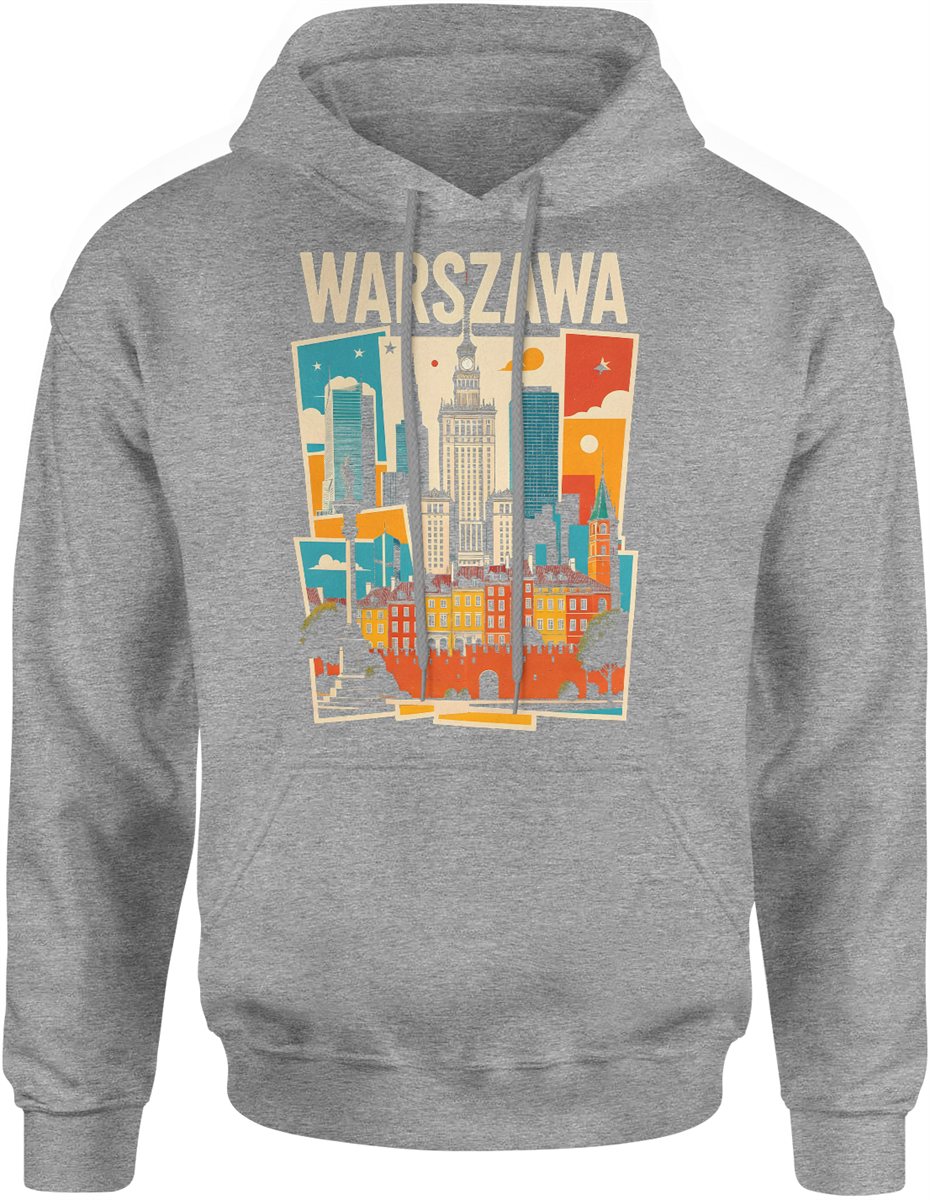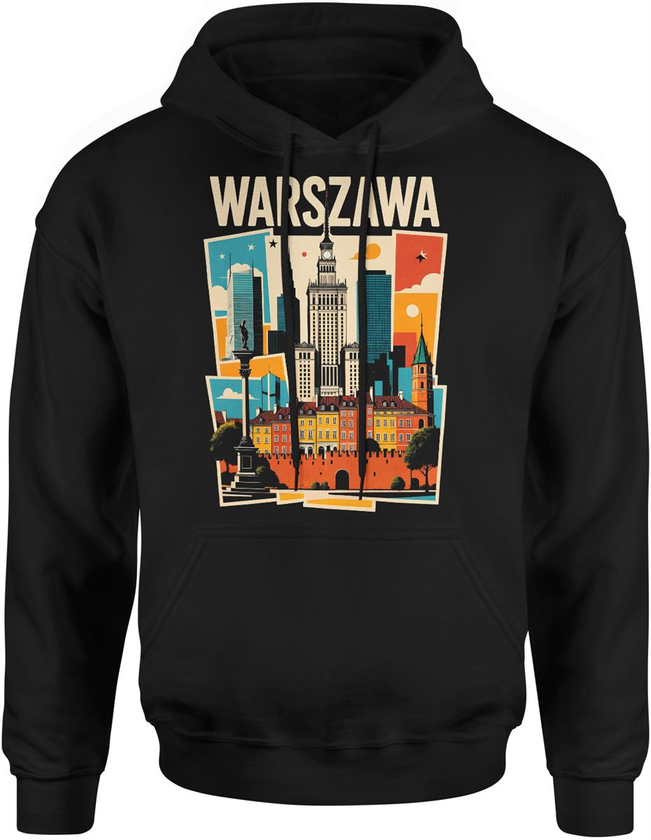 Warszawa skyline miasto architektura stolica Polska retro budynki podróże klimat urban Męska bluza z kapturem