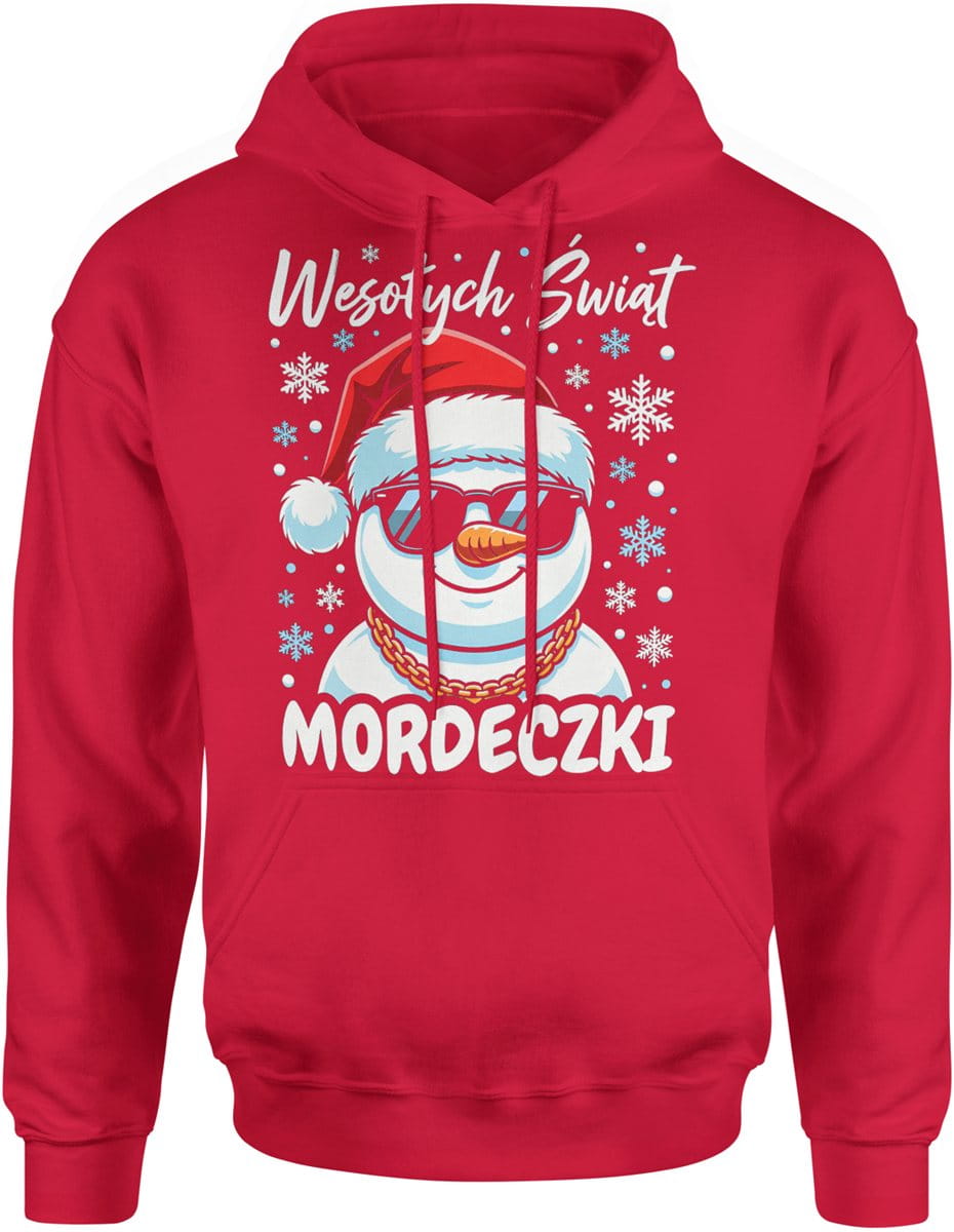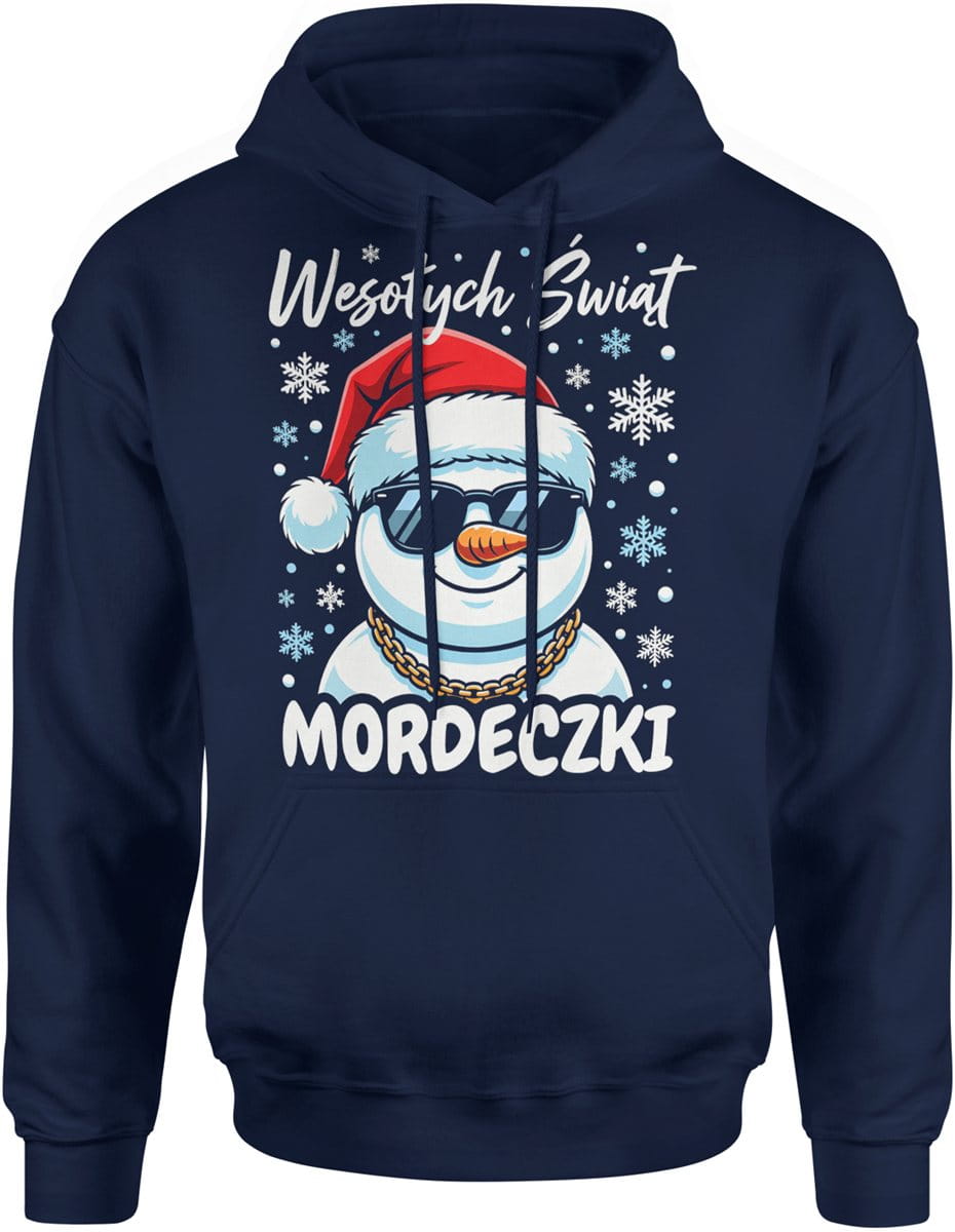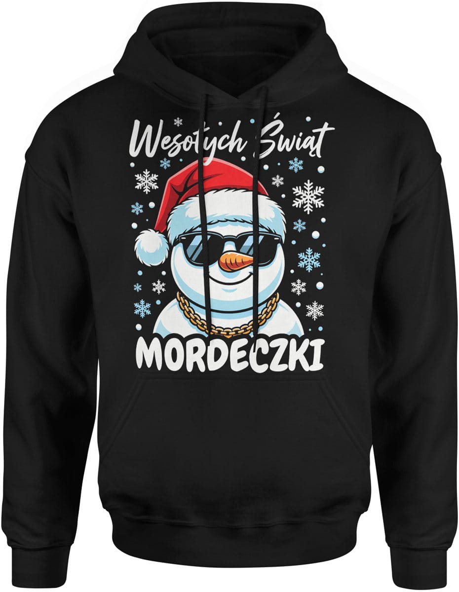 Wesołych Świąt mordeczki z wesołym bałwanem Męska bluza z kapturem