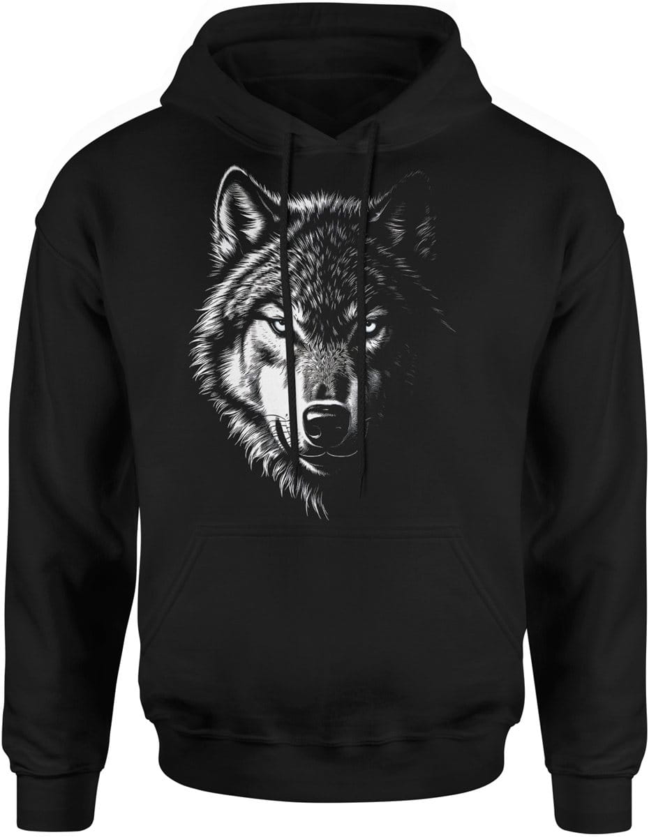 Wilk alfa nocny drapieżnik dzika natura siła charakteru leśny wojownik mocy Męska bluza z kapturem