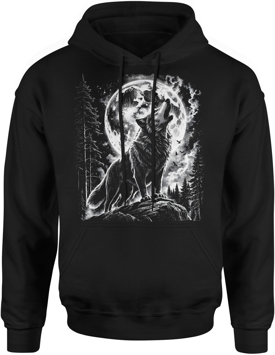 Wilk wyjący do księżyca noc las natura dzikość zwierzę mrok pełnia Męska bluza z kapturem