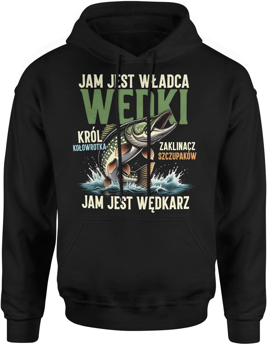 Władca wędki wędkarz szczupak pasja łowienie natura Męska bluza z kapturem