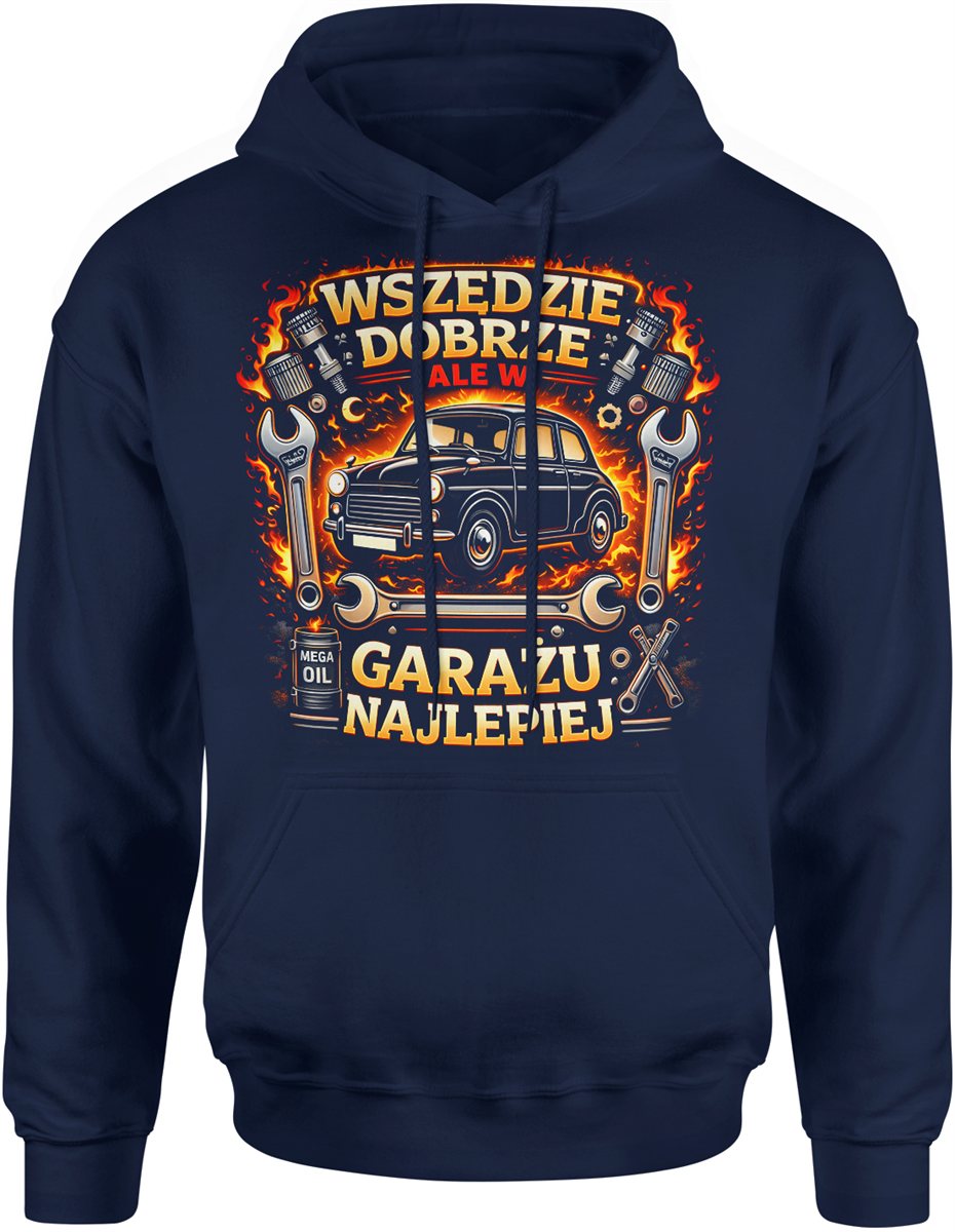 Wszędzie dobrze ale w garażu najlepiej mechanika samochód klucze pasja auto styl retro Męska bluza z kapturem