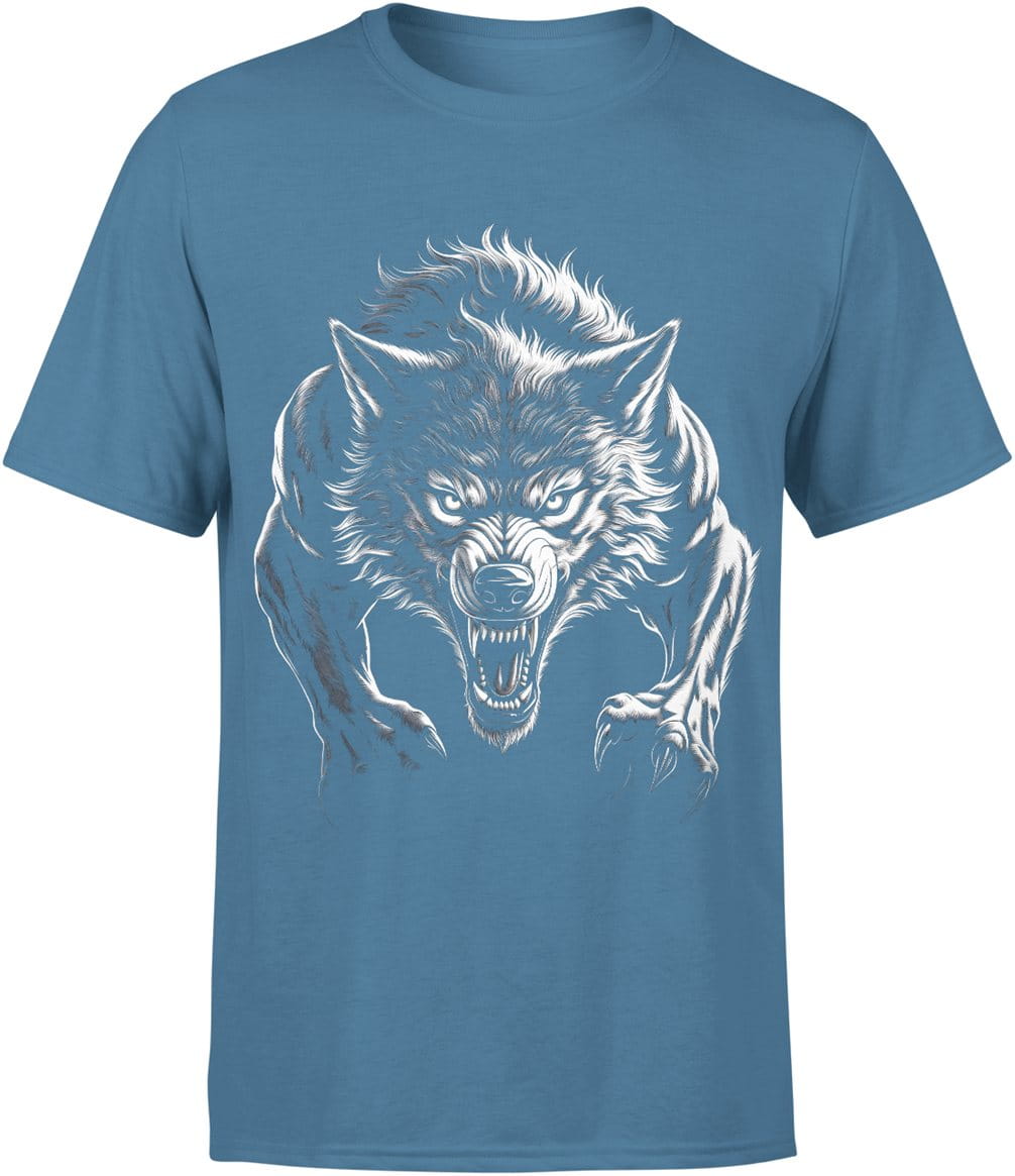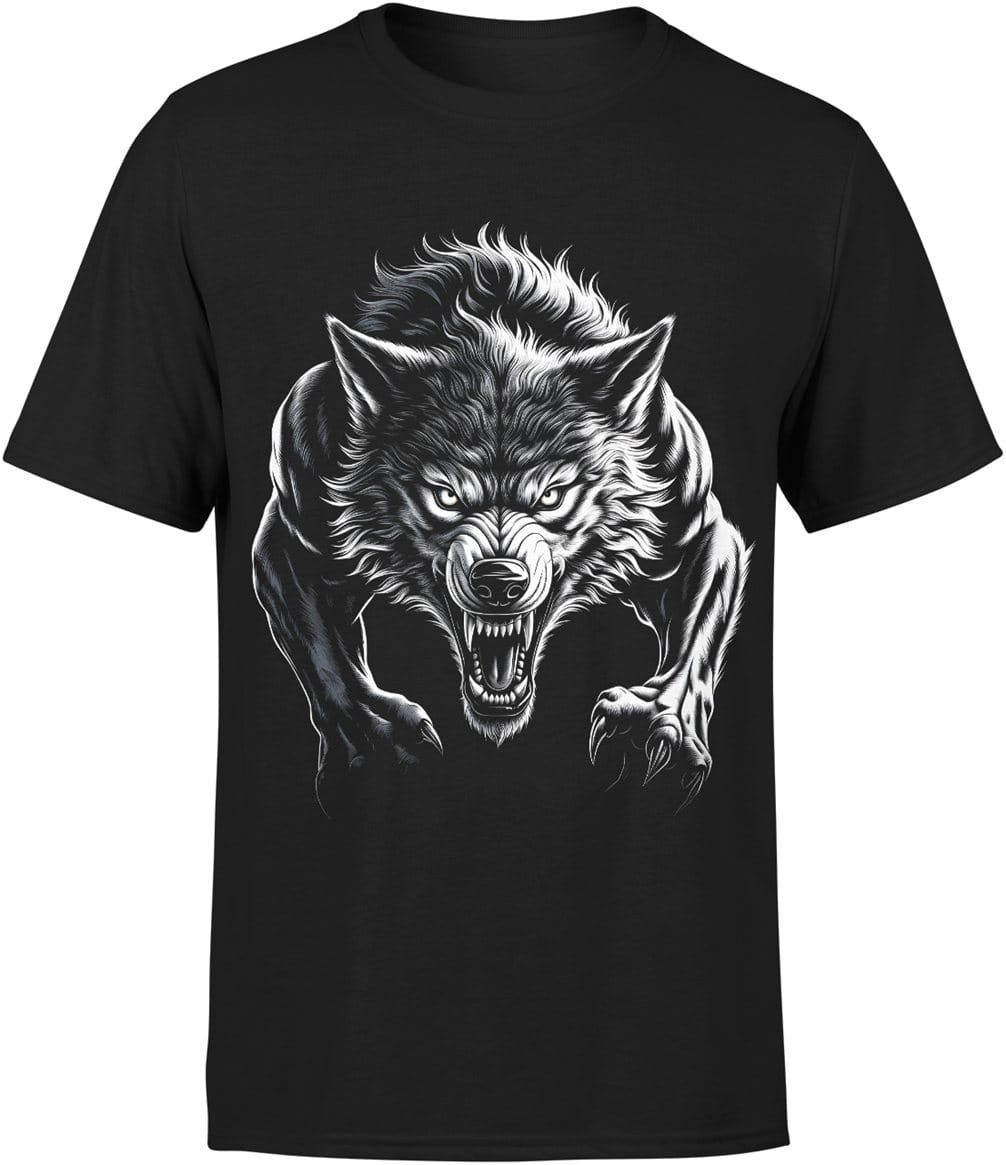 Atakujący wilk drapieżna siła dominacja instynkt bestii dzika wilkołak Męska koszulka