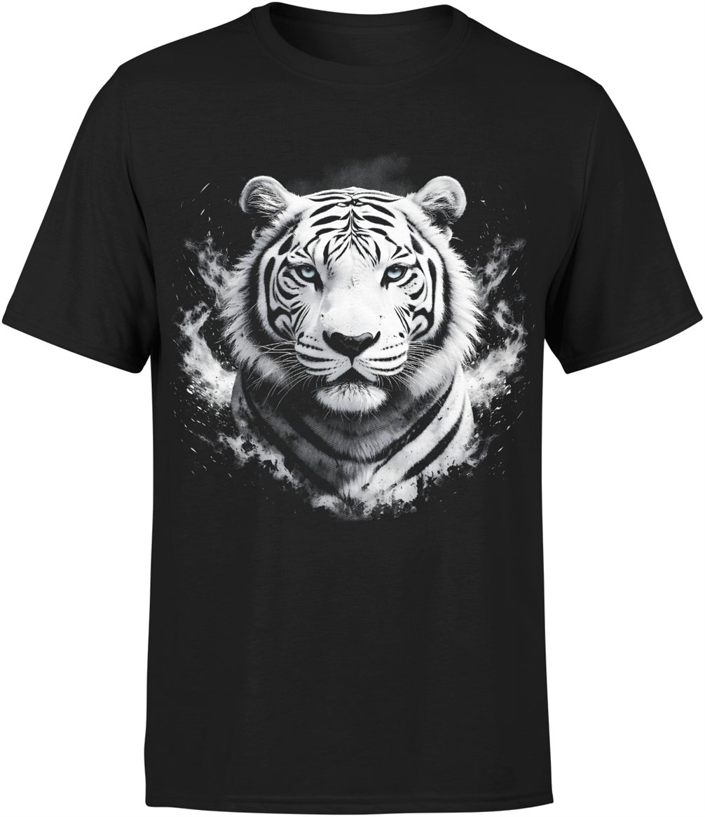 Biały tygrys potężny drapieżnik oczy lodu dzika natura siła elegancja zwierzę Męska koszulka