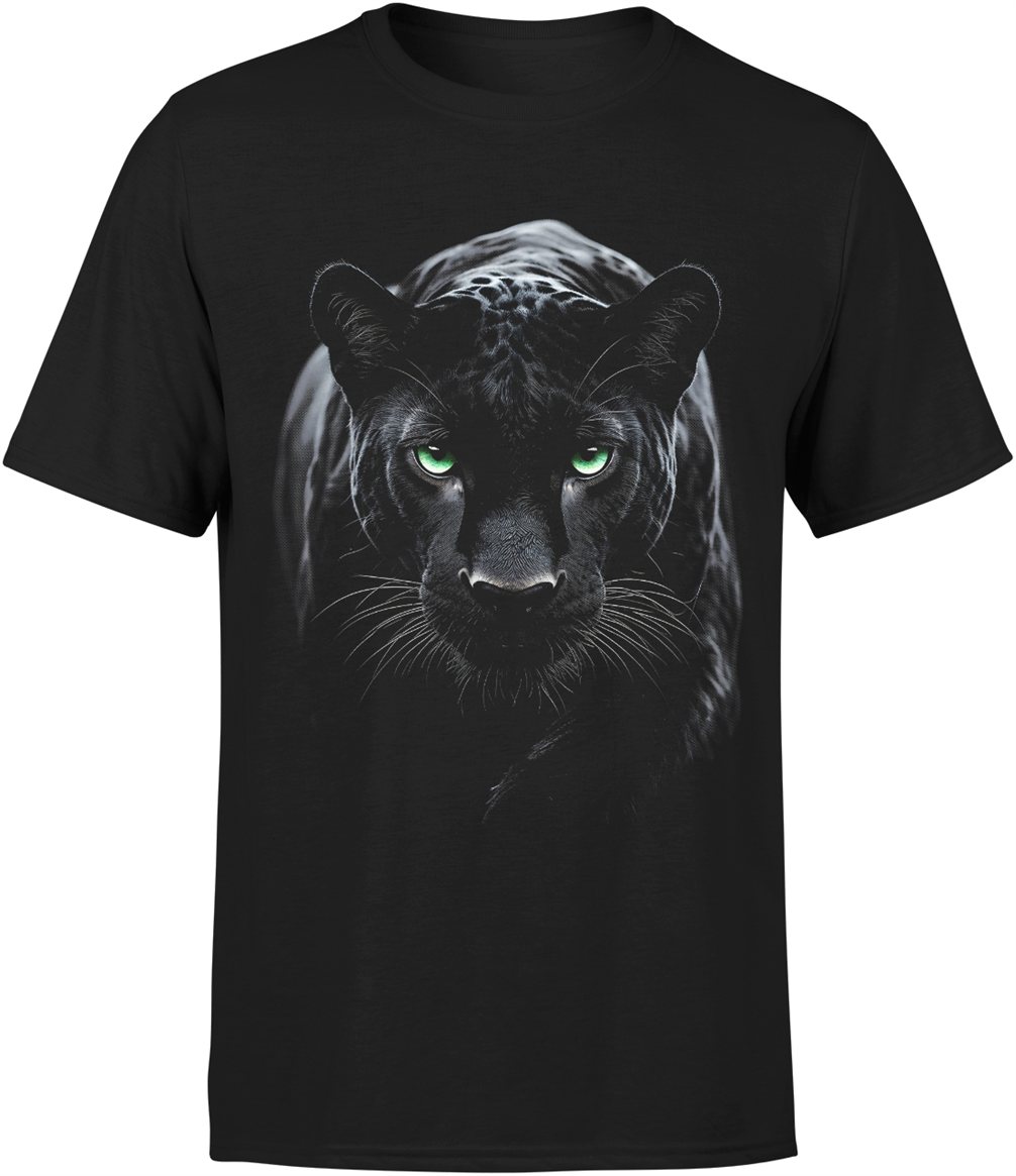 Czarna pantera zielone oczy dzikie zwierzę drapieżnik natura lew kot Męska koszulka