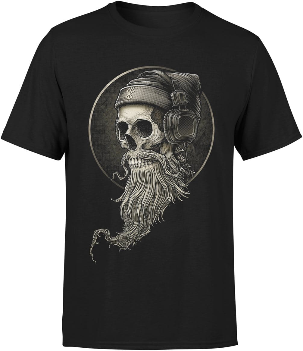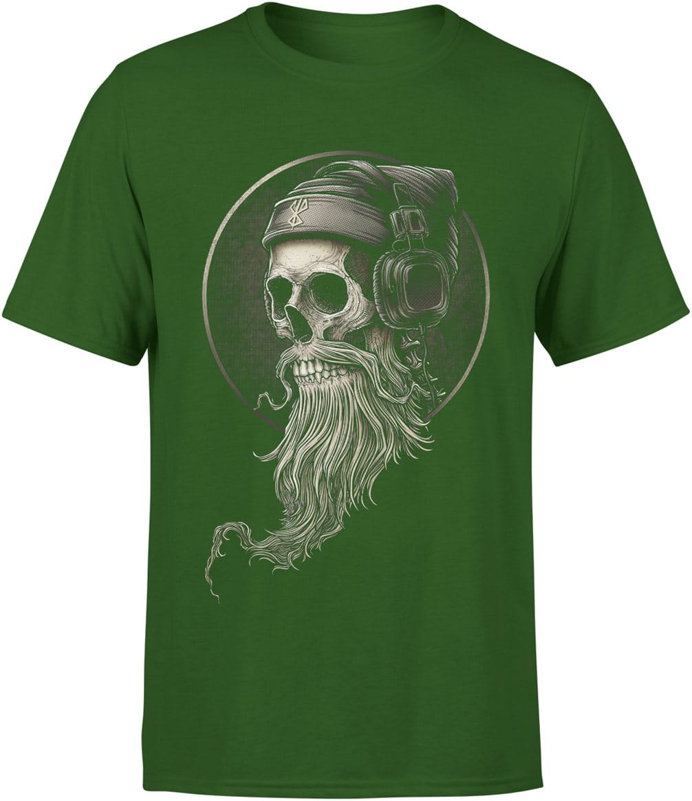 Czaszka z brodą i słuchawkami muzyczny motyw Męska koszulka