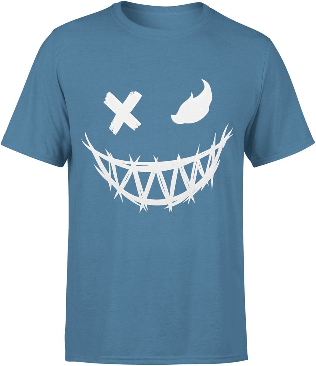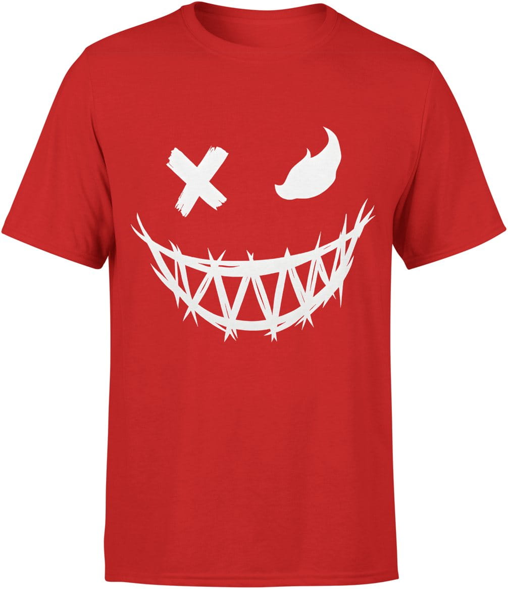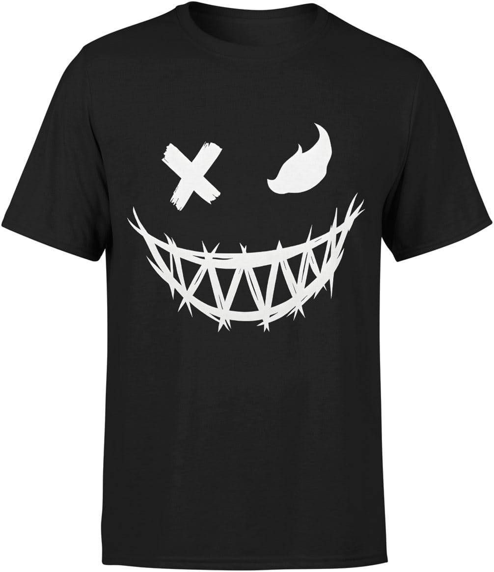 Demoniczny uśmiech biały motyw maska horror kreska mrok styl halloween Męska koszulka