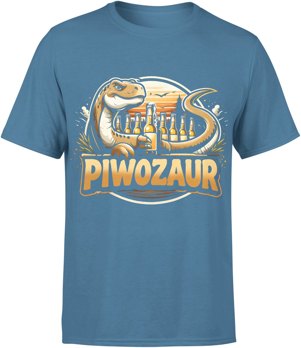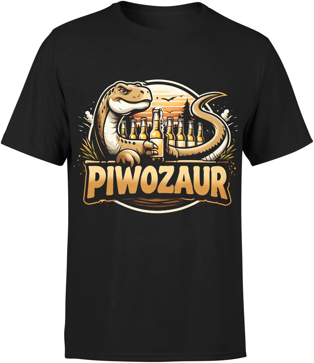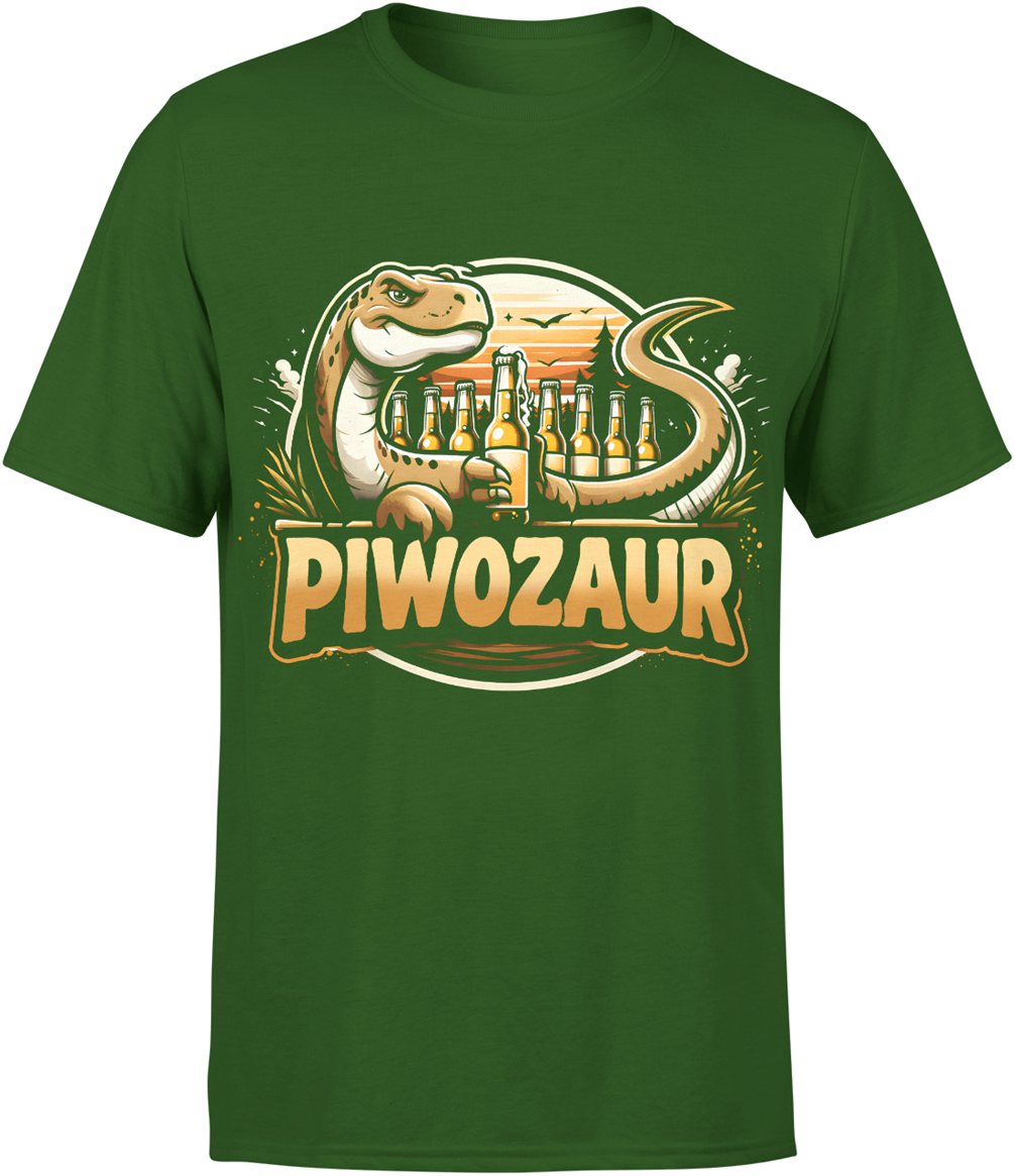 Dinozaur z piwem piwozaur butelki piwa humor impreza gad motyw alkoholowy tekst Męska koszulka