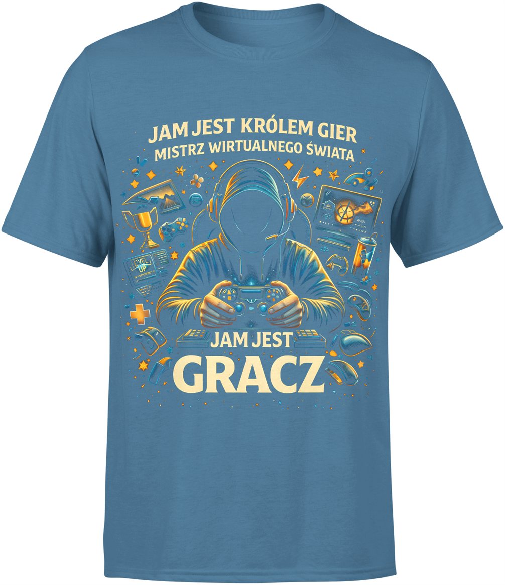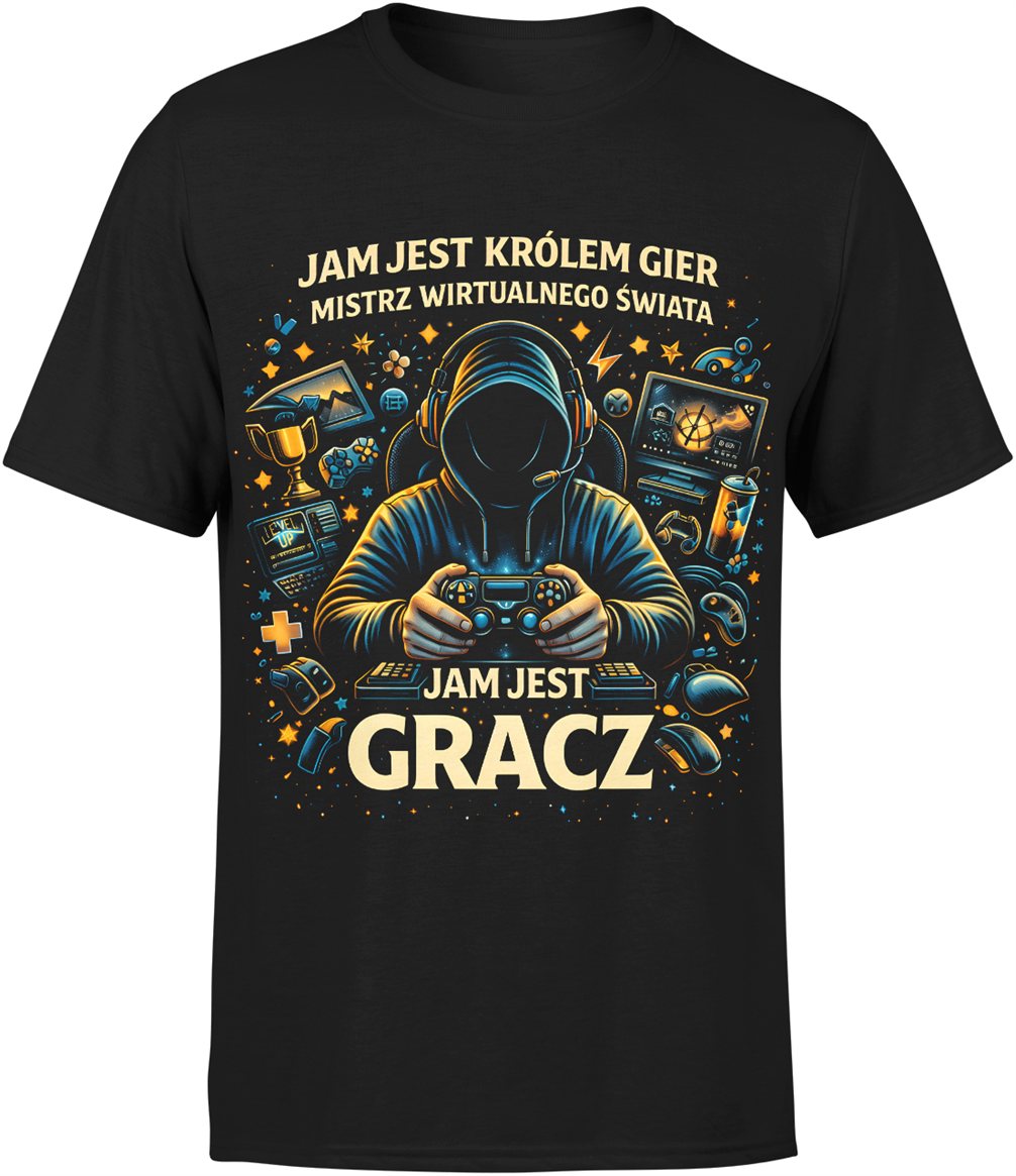 Gracz gaming pad konsola e-sport rozrywka wirtualny świat rywalizacja pasja komputer hobby Męska koszulka