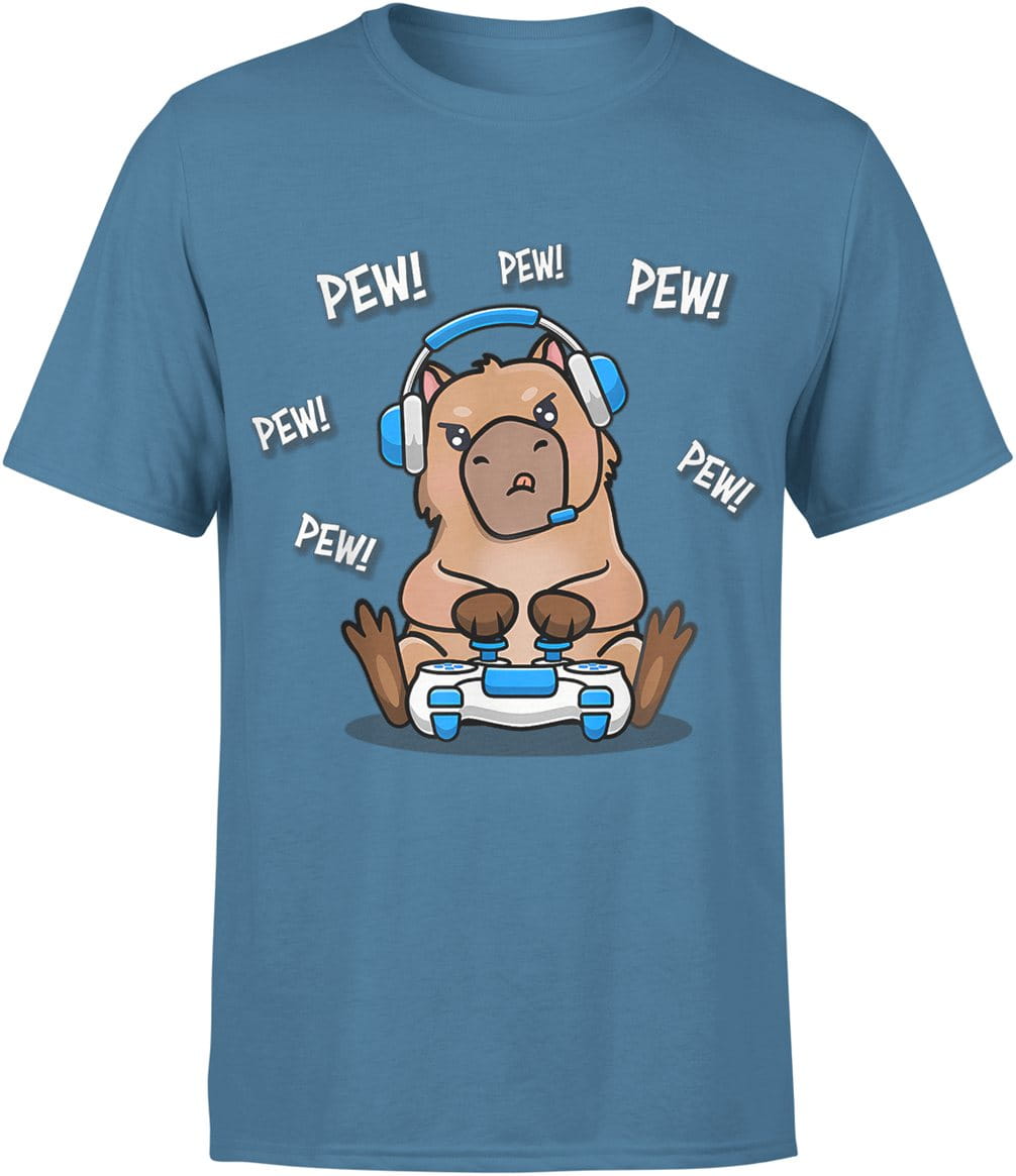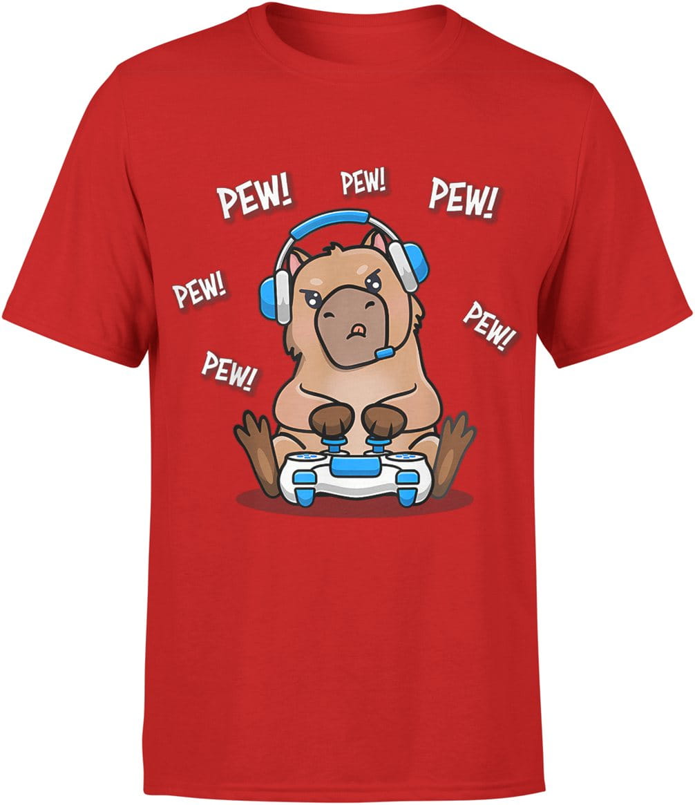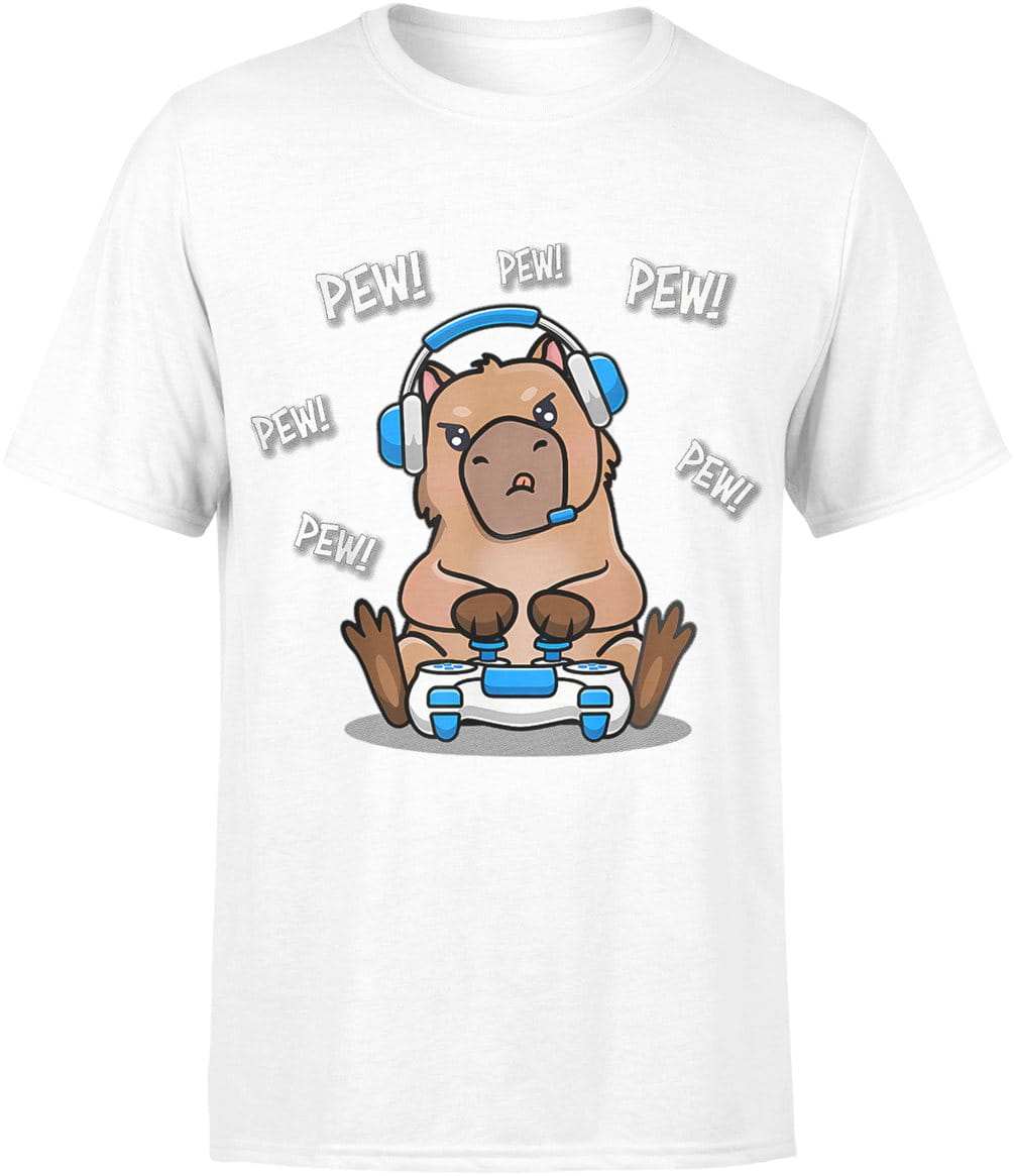 Gracz kapibara gamer Pew Pew z padem Męska koszulka