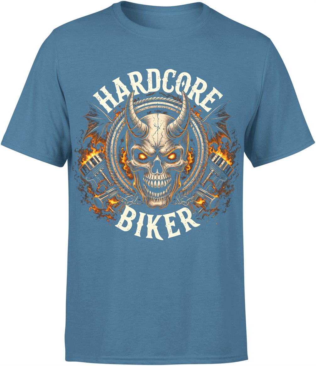 Hardcore biker motocykl czaszka płomienie stal silnik jazda moto styl Męska koszulka