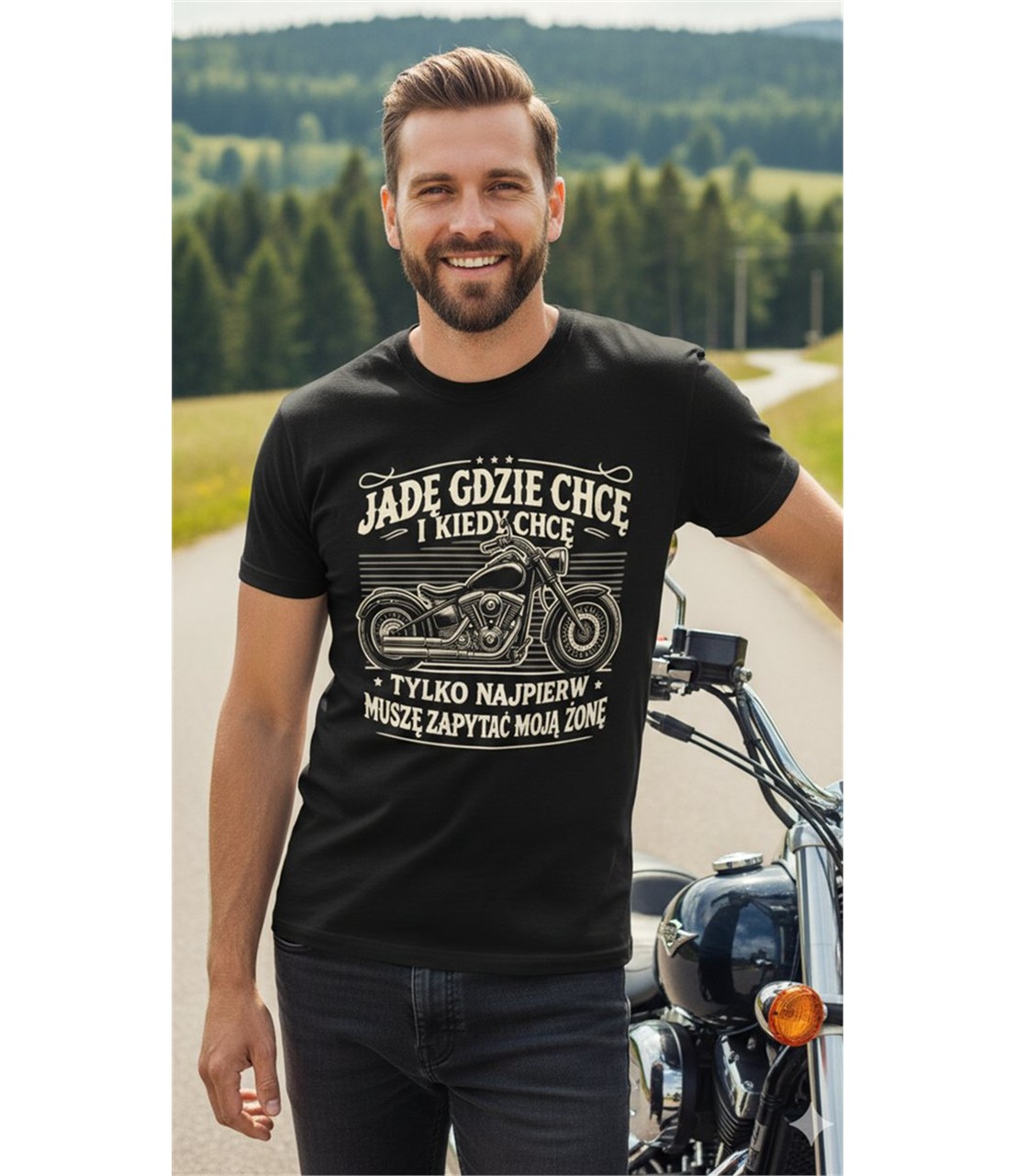 jadę gdzie chcę motor humor motocyklista żona Męska koszulka